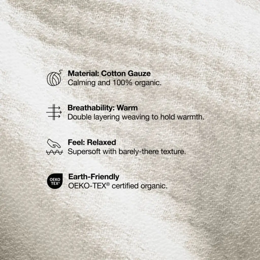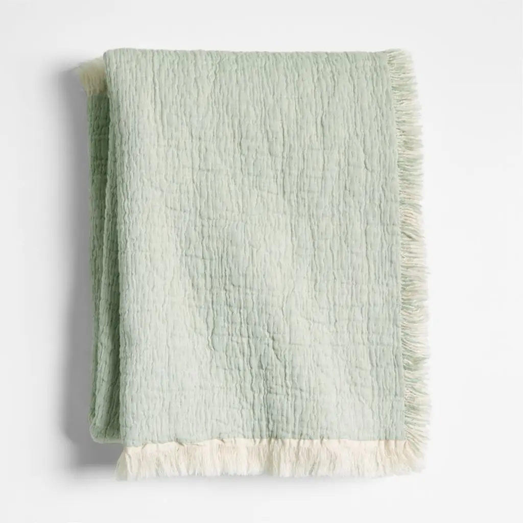 Add a cozy, all-season layer to your kid's bed with our Supersoft Organic Cotton Gauze Blanket. The lightweight gauze is ultra breathable, and it only gets softer with each wash. The pale green hue adds a touch of earthy color to any kid's room (with a fringed trim for an added dose of fun), and it coordinates beautifully with the rest of our Supersoft Cotton Gauze bedding collection.