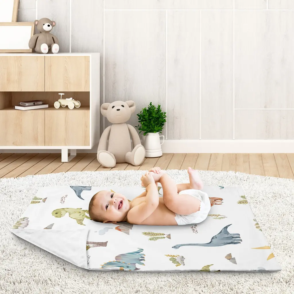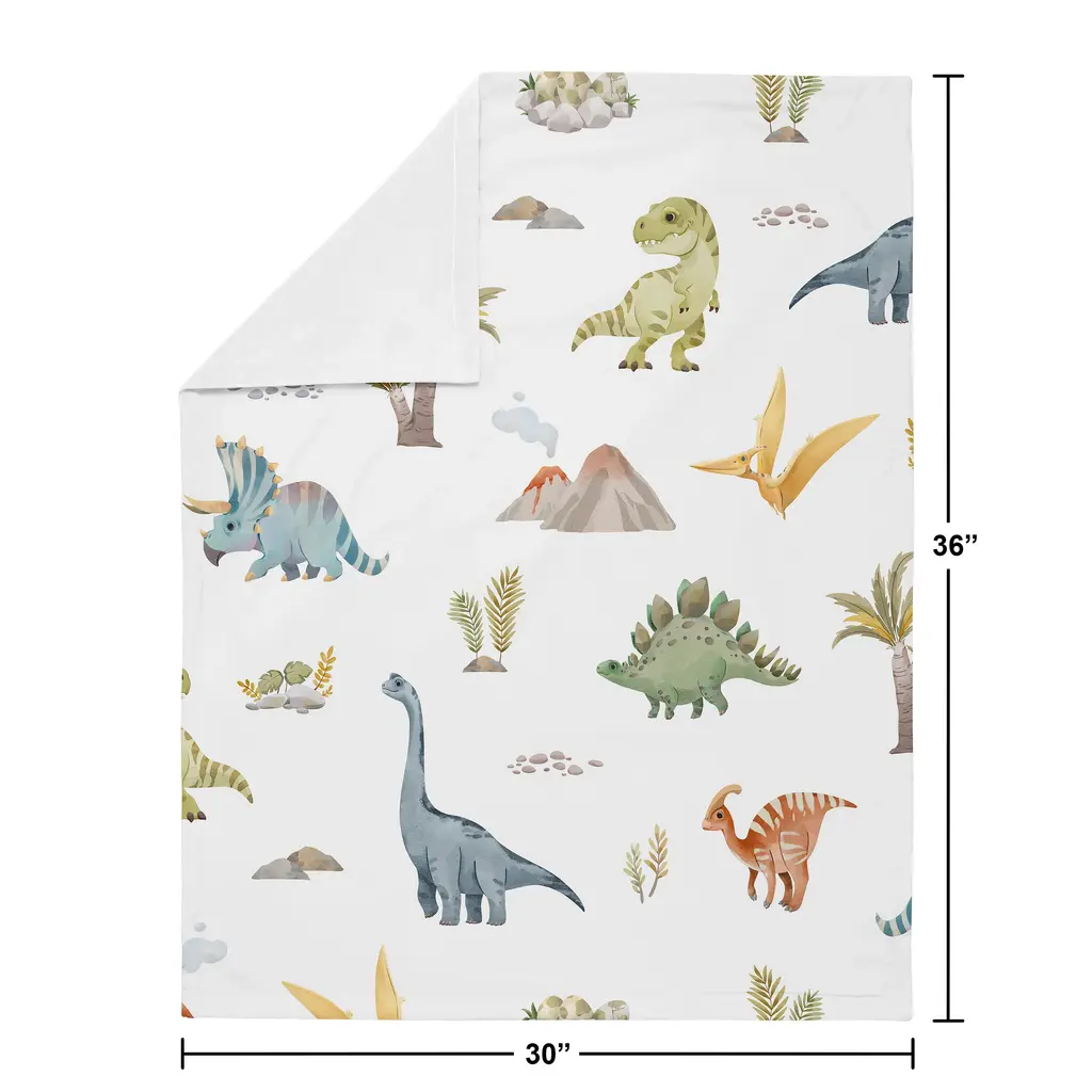 Sweet Jojo Designs Watercolor Dinosaur Dino Baby Boy Receiving Security Swaddle Blanket Green Blue White Modern Jurassic Animal - Animals/baby Boy - Slate Blue, Turquoise, Green, Orange And Yellow