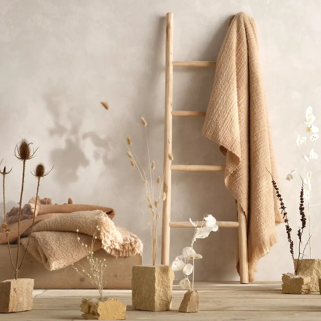 Blending fine cashmere (15%) and baby camel (85%) yarns by Cariaggi - a textile brand with a strong commitment to sustainability and inclusivity - this blanket is an artisan piece that is as simple as it is precious. Members of the San Patrignano drug rehabilitation center minutely weave every piece on a reproduction of a 17th-century loom. Affiliated with a charity project, 100% of the proceeds are donated to the San Patrignano center.