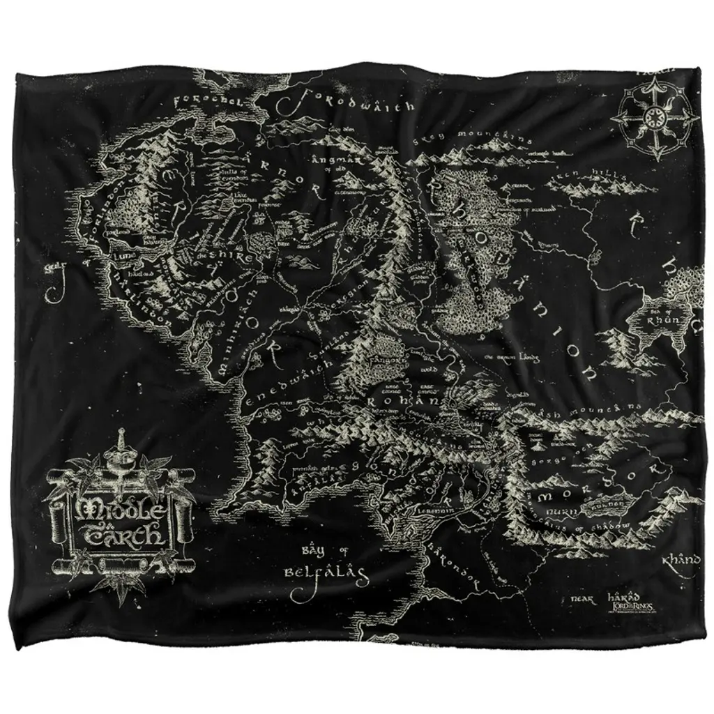 The Lord Of The Rings Black Map Of Middle Earth Silky Touch Blanket White 50x60