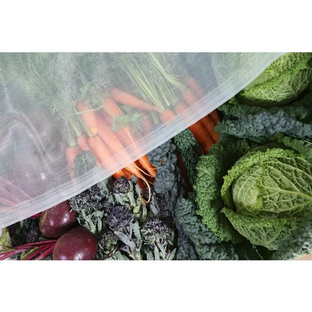 Micromesh offers an organic solution for safeguarding your crops from pests and insects. The blankets permit airflow and moisture, ensuring your plants remain healthy and well-fed. Conveniently, there's no need to remove the mesh for watering or applying liquid feed; it can be done right through the mesh. The ultra-fine 0.6mm mesh effectively blocks cabbage root flies, carrot flies, white flies, onion flies, flea beetles, vine weevils, aphids, and more. It also prevents bees, wasps, cutworms, caterpillars, moths, and butterflies from reaching the plants. It acts as a barrier against various insects, birds, animals, and frost while allowing sunlight and watering, and providing easy crop access. The green tint offers shade and helps retain moisture. The pre-cut blankets are equipped with fabric loops for convenience.