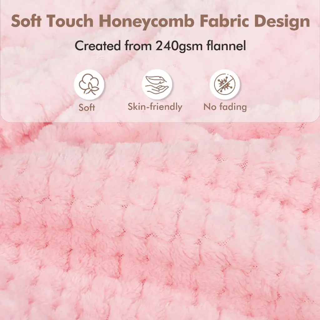 Tirrinia 4-in-1 Travel Blanket – Premium Fleece With Zippered Pocket & Built-in Carry Bag, Pink Honeycomb