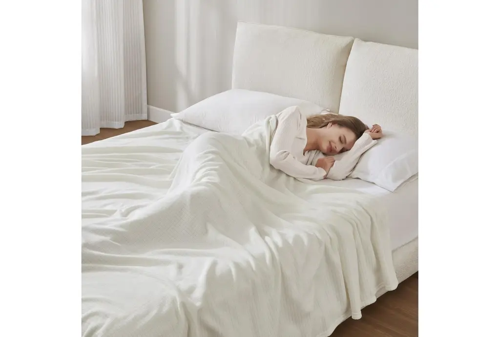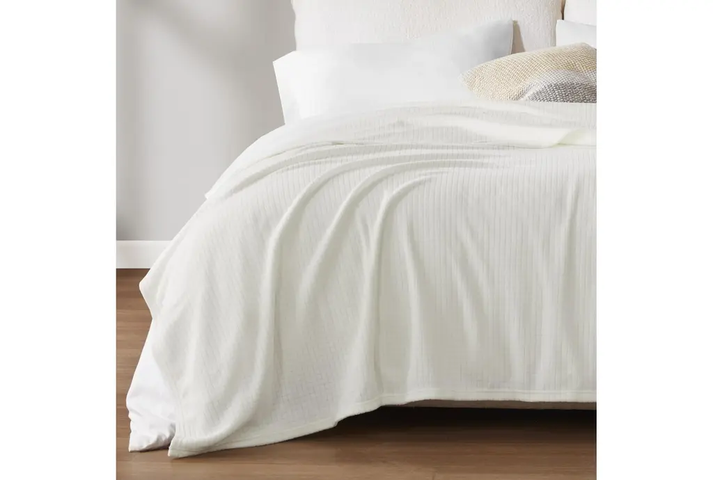 Twin Ivory Polyester Microfleece Blanket | Machine Washable