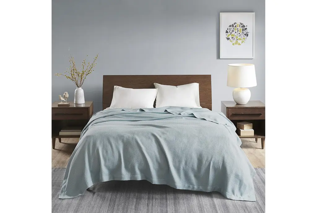 Twin Light Blue Egyptian Cotton Blanket | Machine Washable