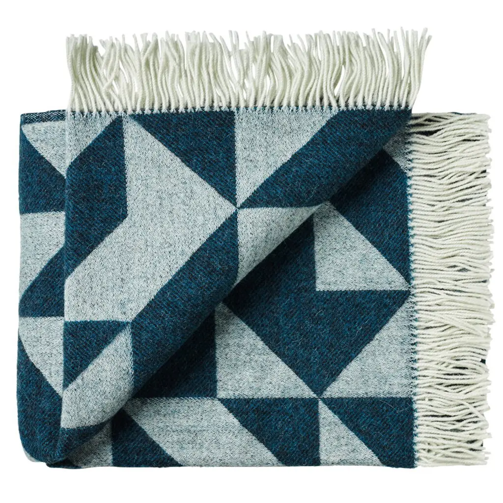 Designed by Tina Ratzer, the Twist a Twill blanket charms with its geometric pattern. The design is a modern interpretation of a classic patchwork quilt. The triangles are twisted and turned around and the result is a gorgeous, three-dimensional pattern. The warm and soft throw is made from 100 % merino wool.