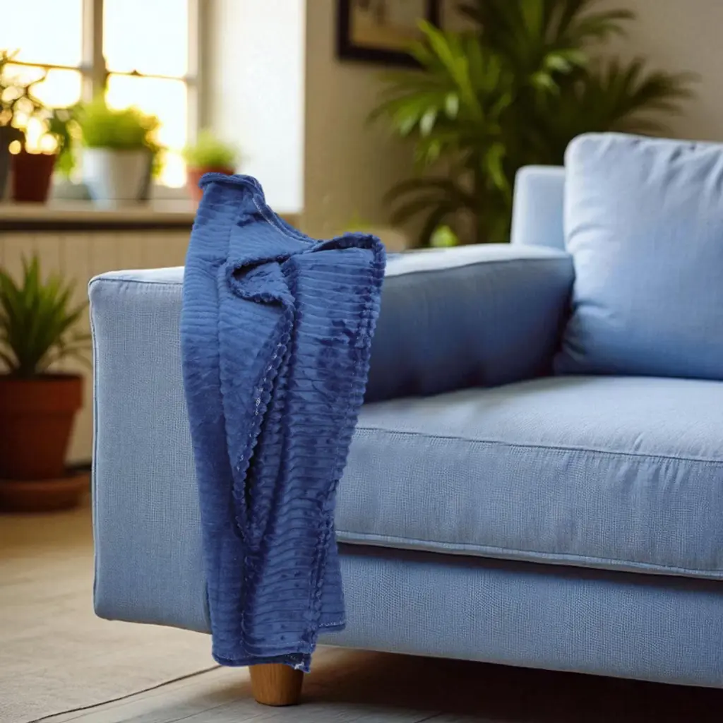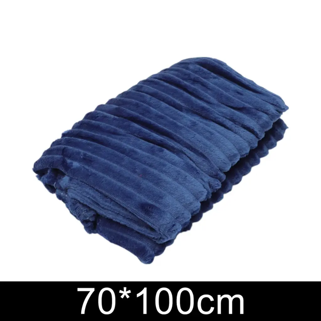 Unique Bargains Blanket Solid Color Stripe Flannel Polyester Blue