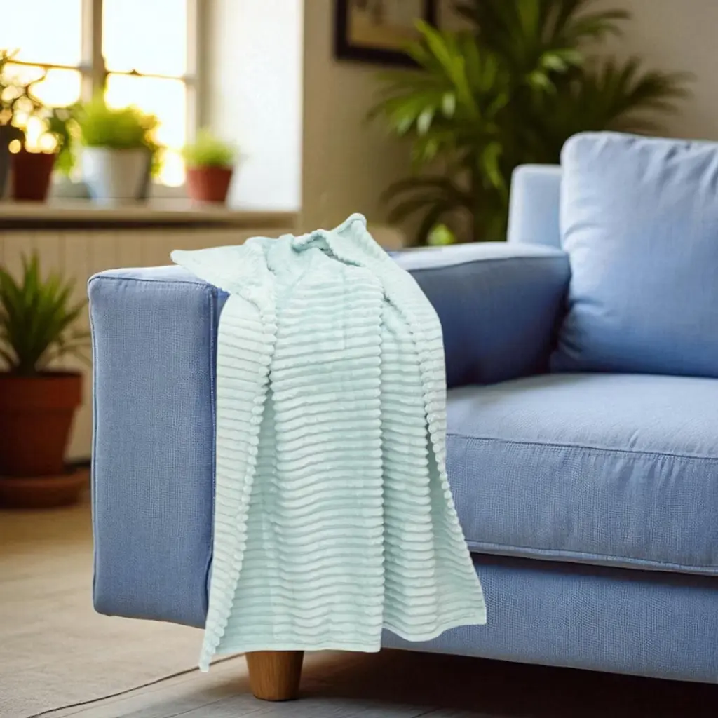 Unique Bargains Blanket Solid Color Stripe Flannel Polyester Gray Green