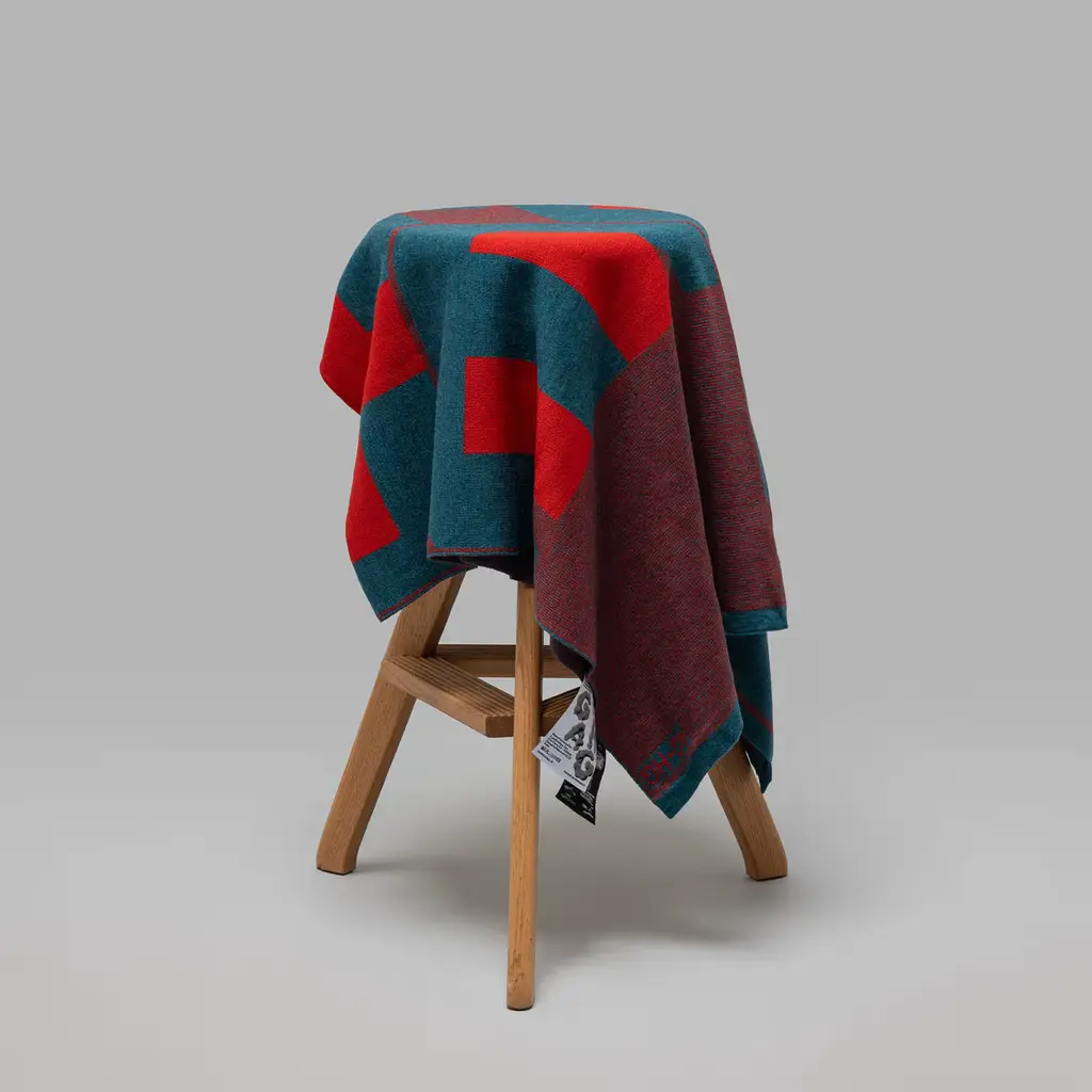 Viceversa is a 100% merino wool blanket crafted using jacquard technique, featuring a geometric pattern in orange and turquoise. Part of the “Flying Objects” project by designer Gianluca Alla, it explores the graphic reversibility of fabrics, in collaboration with Hansel Grotesque Studio. The blanket is available in green and violet, as well as gray and black. Please contact the concierge for more information.