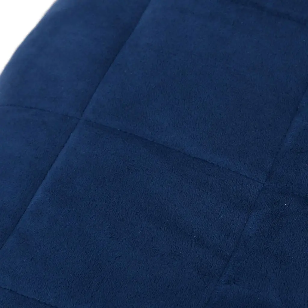 This weighted blanket, sized at 54.3 x 78.7 in, wraps you in comforting security. Whether you want relaxation or stress relief, it envelops you in a soft and snug cocoon with a rich blue shade and smooth quilted texture, making it a great addition to any bedroom. Soothing Weight: The blanket mimics about 10% of your body weight, giving a calming feel that boosts comfort at night and helps lessen anxiety. Breathable Fabric: Made from 100% brushed polyester microfiber, this blanket allows excellent airflow to prevent overheating while you kick back, making it great for all kinds of weather. Contemporary Design: Its eye-catching blue color and modern look make it a great addition to your bedroom, blending nicely with current furnishings. Versatile Use: Perfect for adults needing anxiety relief or stress reduction, you can use it on beds or sofas, suiting various tastes in different spots. Easy Care: Made for hassle-free maintenance, this blanket only needs hand washing to keep it fresh and lasting.