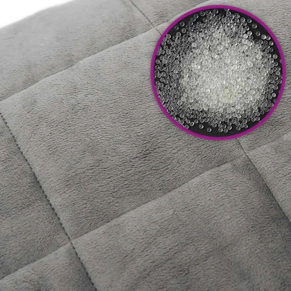This weighted blanket is made to provide soothing comfort and support for folks dealing with anxiety or stress. With its generous size of 61 x 86 in, it’s a perfect mix of function and style, making it a brilliant addition to any modern bedroom. The grey color fits in nicely with different decors and has a calming effect that helps you relax and feel good. Even Weight Distribution: The quilted design of the blanket ensures even weight distribution, which can help ease racing thoughts and create a sense of safety.Breathable Material: Made from 100% cotton and polyester, the blanket allows for air to circulate, preventing overheating and keeping you comfy as you use it.Stylish Aesthetic: Its simple grey tone and sleek design make it a top accessory for any bedroom, adding both comfort and a nice visual flair.Hypoallergenic Fill: The blanket is stuffed with hypoallergenic glass beads, making it friendly for those with allergies or sensitive skin, giving a gentle touch for an enjoyable experience.Calming Aid: Ideal for anyone wanting that extra support during hectic times, this blanket helps with stress relief and promotes restful sleep and relaxation.