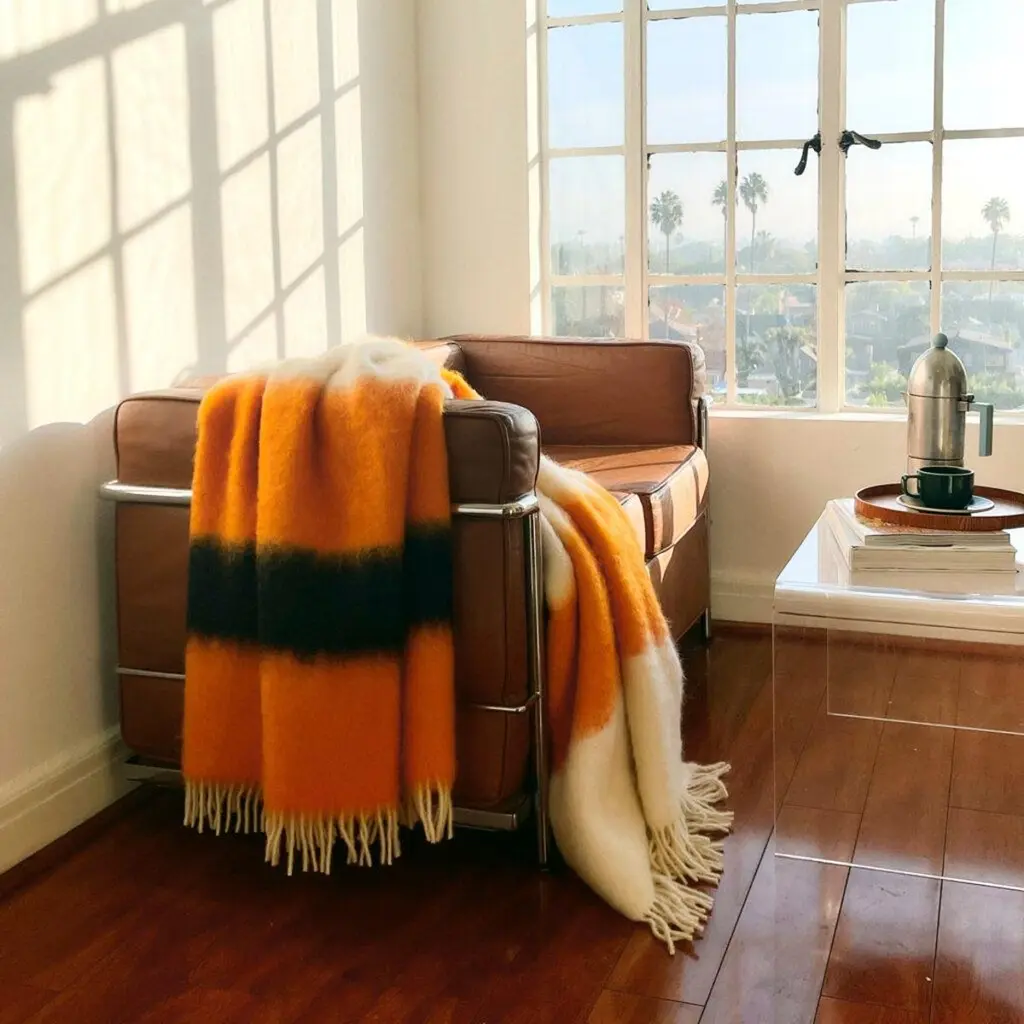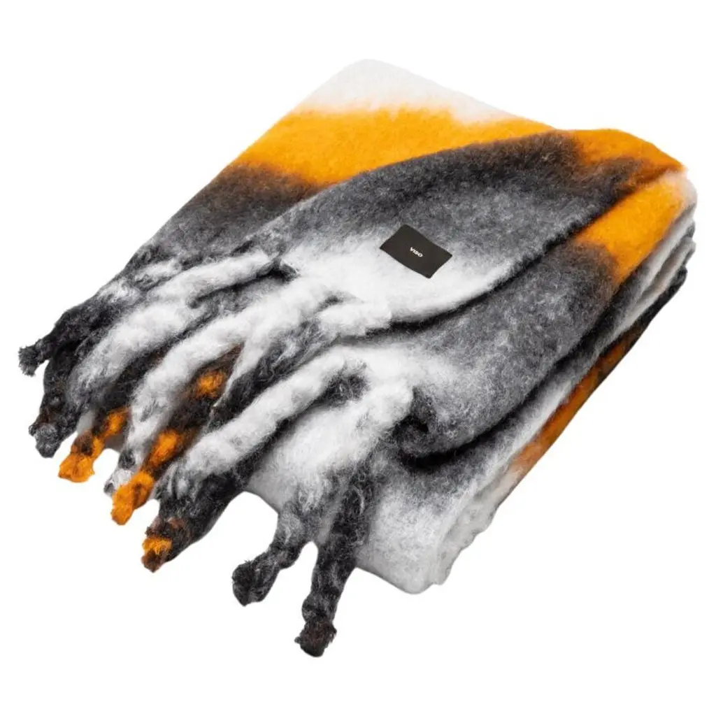 The most exquisite Mohair is handled by master carders, shearers dyers and weavers to create the blanket unlike any other.Created in a fully manual weaving process keeping with a tradition that dates back to the 15th century, this lightweight blanket with high volume is the perfect item to keep you warm on cold winter days.Made in SpainStyle : VMB0107Material : 50% mohair, 48% wool, 2% polyamideDimensions : 200 x 135 cmColor : black, orange and whiteLimited stock.
