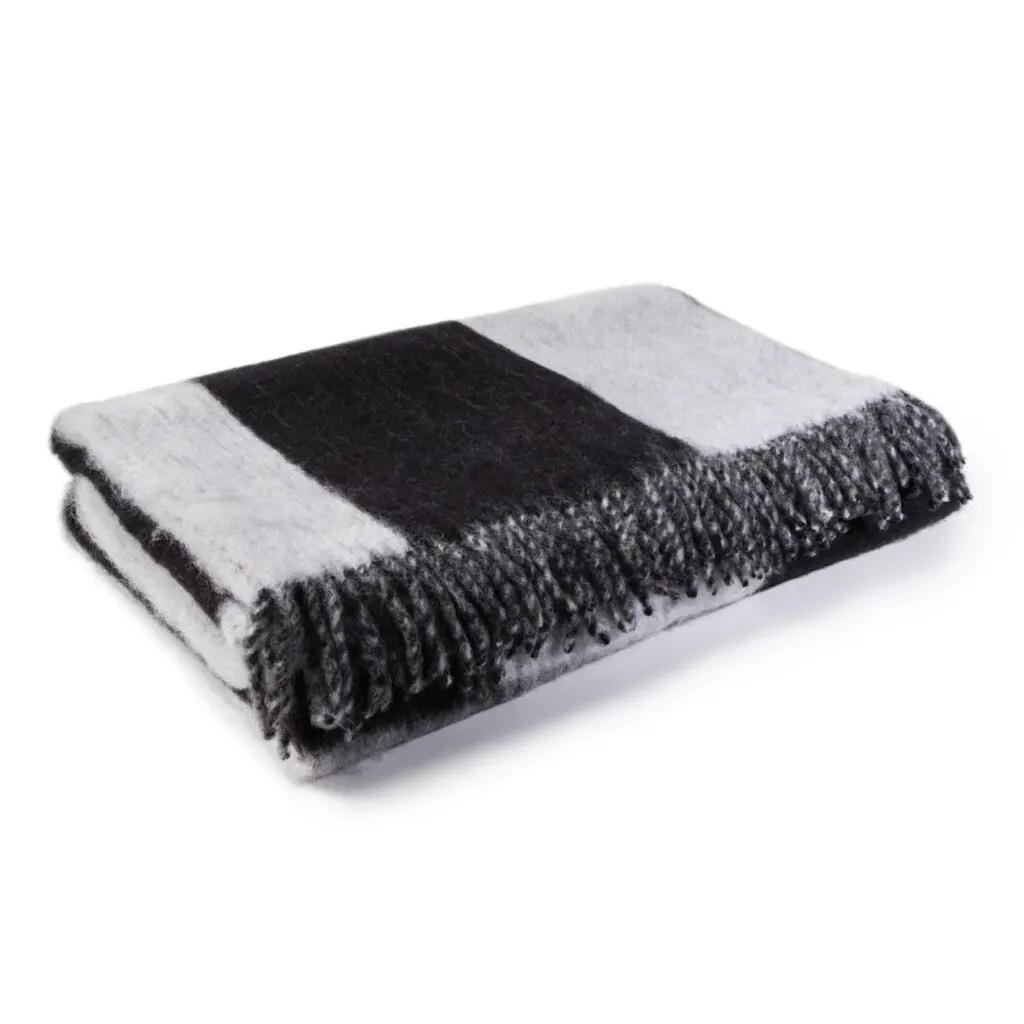The most exquisite Mohair is handled by master carders, shearers, dyers and weavers to create the blanket unlike any other.Created in a fully manual weaving process keeping with a tradition that dates back to the 15th century, this lightweight blanket with high volume is the perfect item to keep you warm on cold winter days.Made in SpainStyle : VMB0501Material : 73% mohair, 24% wool, 3% polyamideDimensions : 200 x 135 cmColor : black and whiteLimited stock.