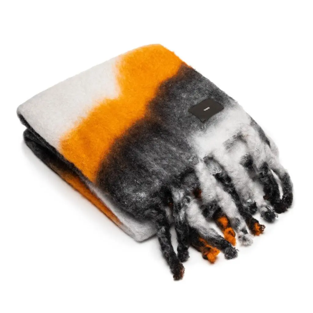 The most exquisite Mohair is handled by master carders, shearers, dyers and weavers to create the blanket unlike any other.Created in a fully manual weaving process keeping with a tradition that dates back to the 15th century, this lightweight blanket with high volume is the perfect item to keep you warm on cold winter days.Made in SpainStyle : VMB0801.Material : 73% mohair, 24% wool, 3% polyamide.Dimensions : 200 x 135 cm.Color : orange, black and white.Limited stock.