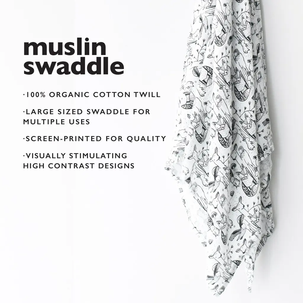 Wee Gallery Muslin Swaddle Blanket - Forest - White