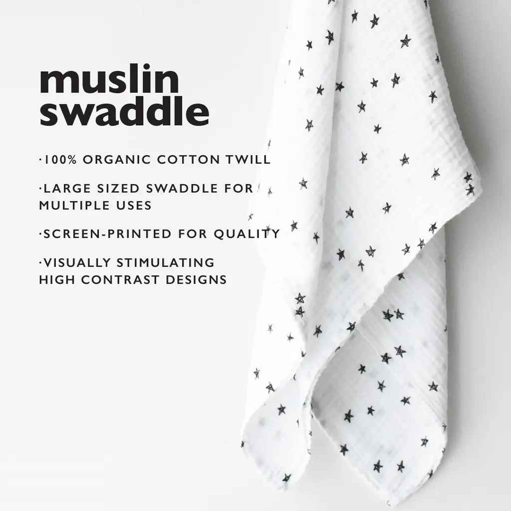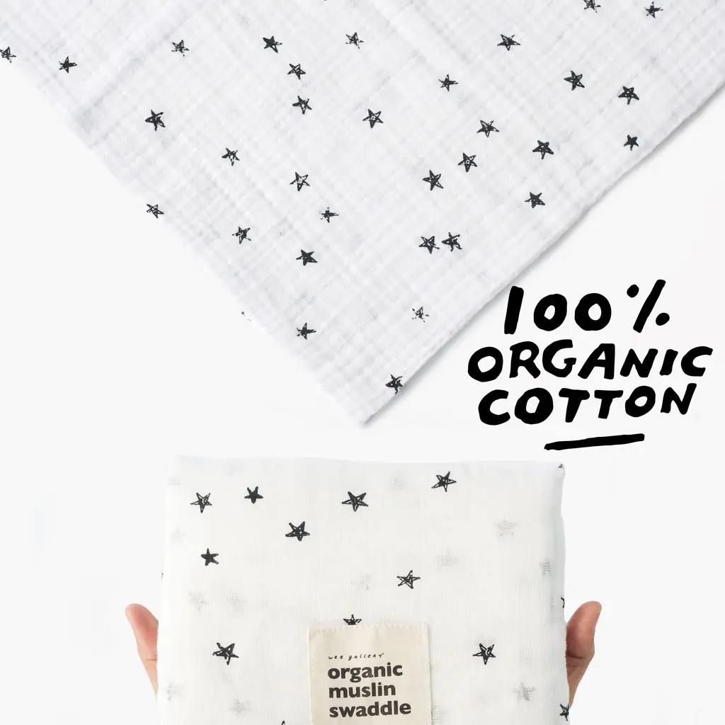 Wee Gallery Muslin Swaddle Blanket - Stars - White