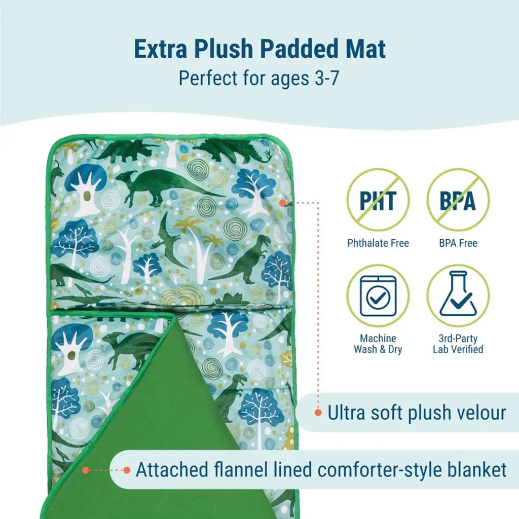 Wildkin Kids Plush Nap Mat For Toddlers, Daycare & Preschool Nap Mats, Attached Blanket (Dinomite Dinosaurs)