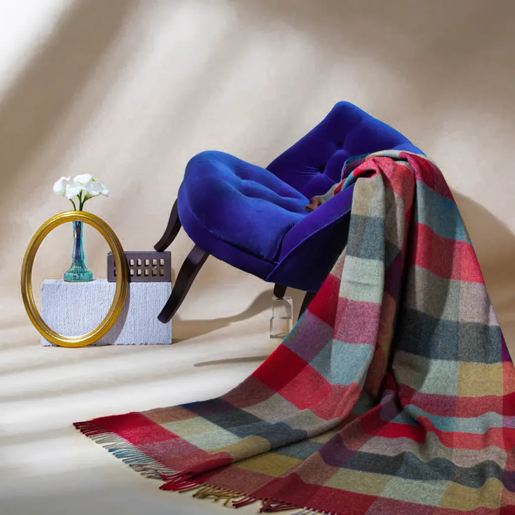 Wonderland - Alpaca & Merino Lambswool Blanket - Bright Coloured Checks