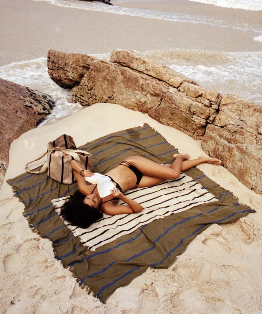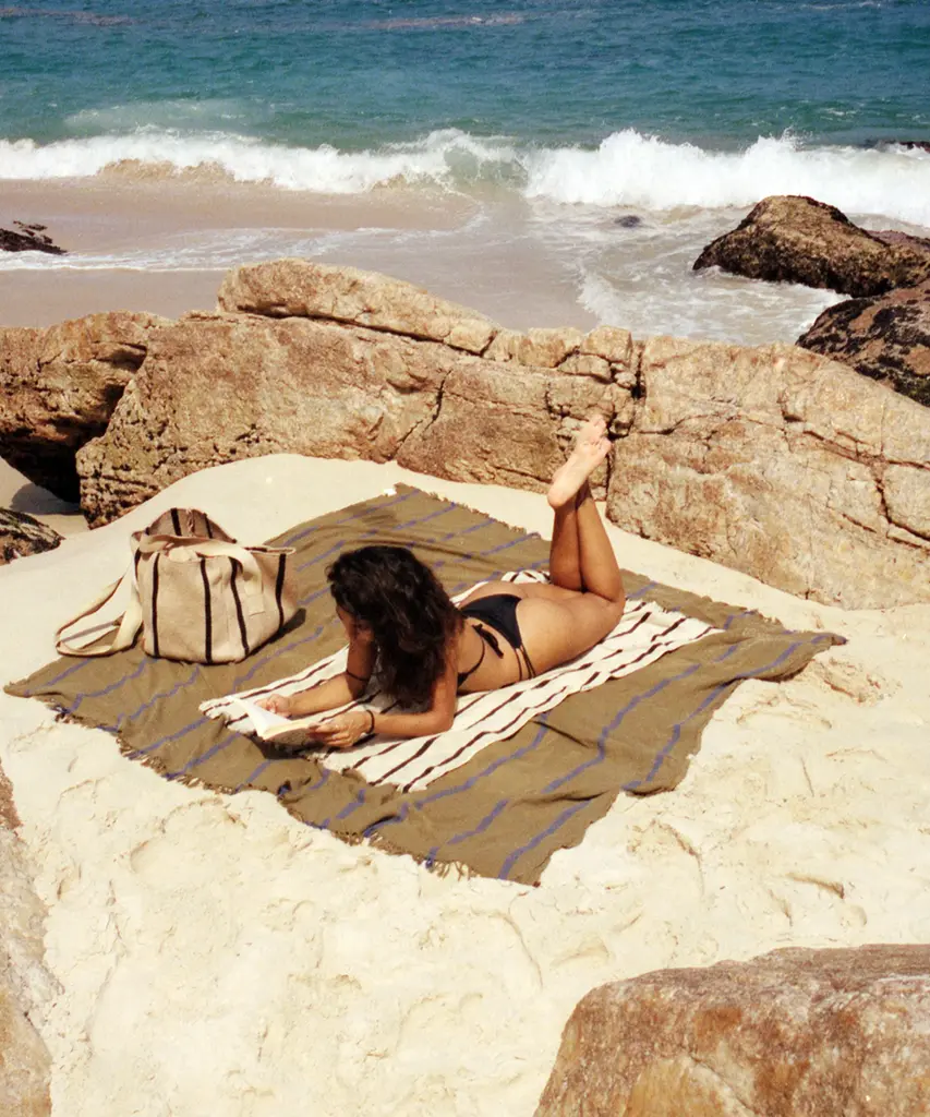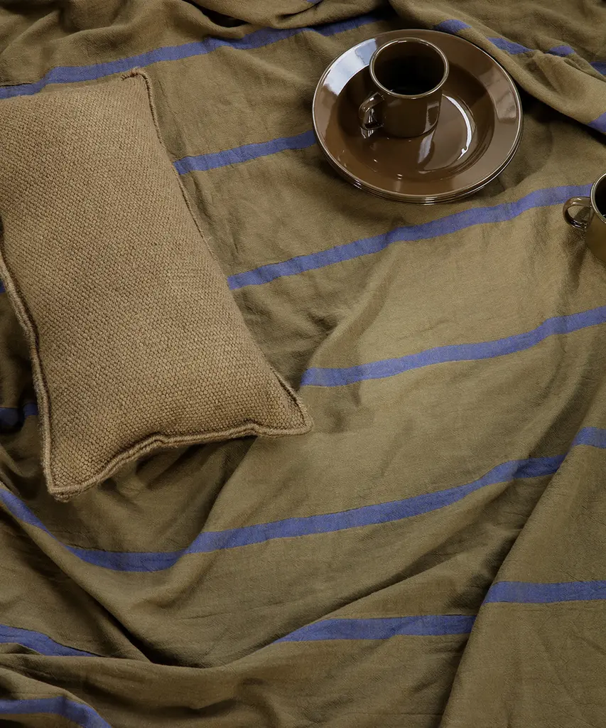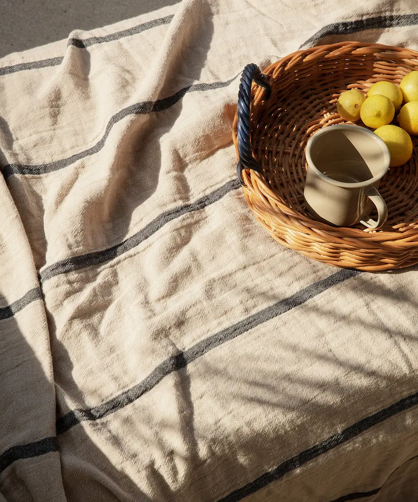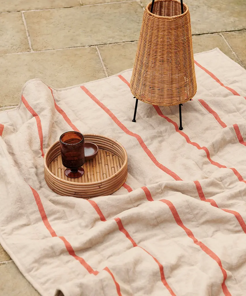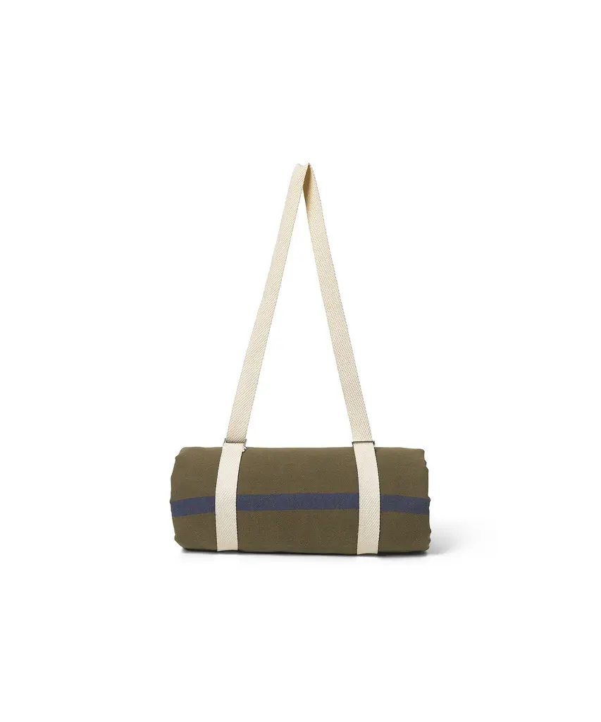 Roll out the Yard Picnic Blanket and enjoy some carefree hours outside. The blanket is double woven in GOTS-certified cotton with fringing at each end, which adds to its relaxed expression. With its practical cotton strap, it can easily be rolled up and carried over the shoulder to the park or beach. Designed and produced by the Copenhagen-based studio Ferm Living.