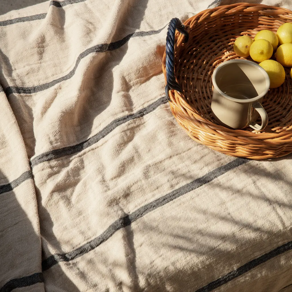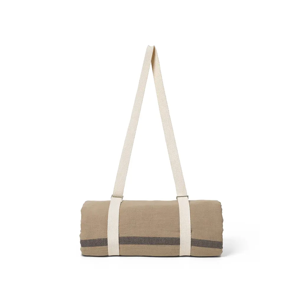 Meet the stunning Yard Picnic Blanket in Sand/Black – your perfect partner for unforgettable outdoor escapades! This stylish and practical picnic blanket is designed by the renowned Ferm Living, ensuring exceptional quality and an eye-catching aesthetic. Featuring a contemporary sand and black striped pattern, this blanket is more than just a pretty face. It’s crafted from 100% organic cotton, providing an eco-friendly and luxurious soft touch for ultimate comfort. The cozy padding is perfect for lounging on the grass or sandy beach, making it an ideal choice for picnics, barbecues, and outdoor gatherings. What’s more, this versatile blanket comes with a convenient carry strap, making it incredibly easy to transport and store. Simply roll it up, secure it with the strap, and off you go! Measuring a generous 140×200 cm, the Yard Picnic Blanket offers ample space for you and your loved ones to spread out and enjoy a delightful day outdoors.