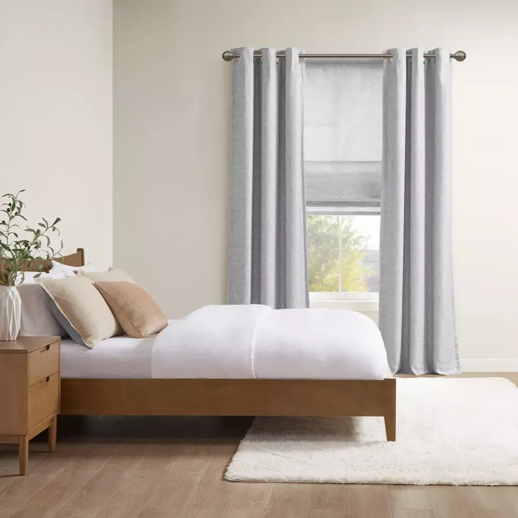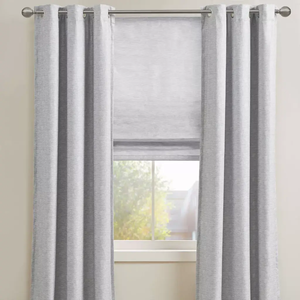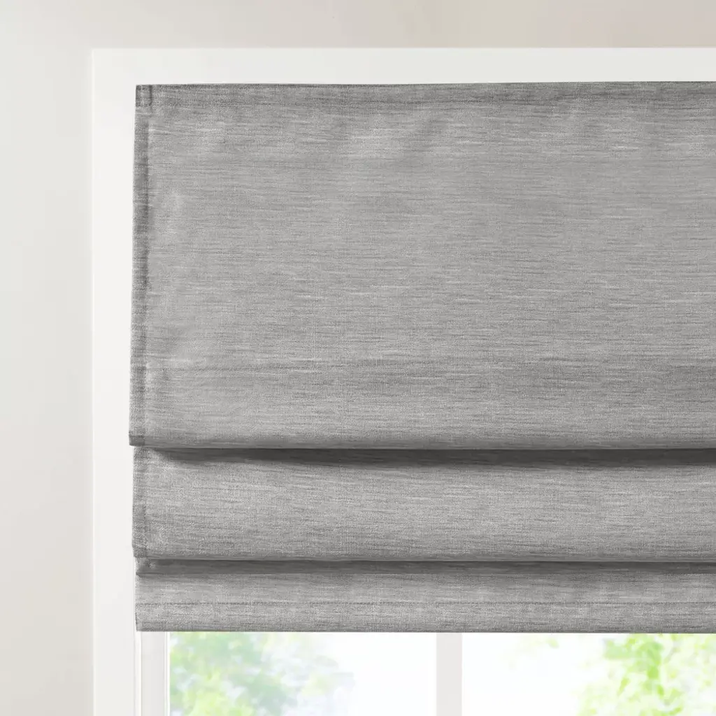 Our Aberdeen Printed Faux Silk Room Darkening Cordless Roman Shade offers a modern and convenient update to your home decor. This roman shade flaunts a tonal grey faux silk textured fabric to create a stylish and beautiful, look and feel. Also achieving the OEKO-TEX certification, these curtains do not contain any harmful substances or chemicals ensuring quality comfort and wellness. A thermal foambacking on the reverse provides energy efficiency and a room darkening effect, for enhanced privacy. The cordless retraction mechanism makes the room darkening shade easy to open and close the throughout the day, while the detachable fabric face allows for easier assembly and cleaning by lightly shaking or dusting. Please note: The top face fabric is detachable from the hook and loop fastener, but is NOT fully removable. Ready to install right out of the packaging, this roman shade can be hung inside or above the window pane allowing you to find the perfect fit for your home decor. Shade measures 64-inches long and comes in 5 width options to suit multiple standard window sizes. Each roman shade is sold as a single and comes with a printed instructional guide as well as an instructional video available on site. Assembly is required.