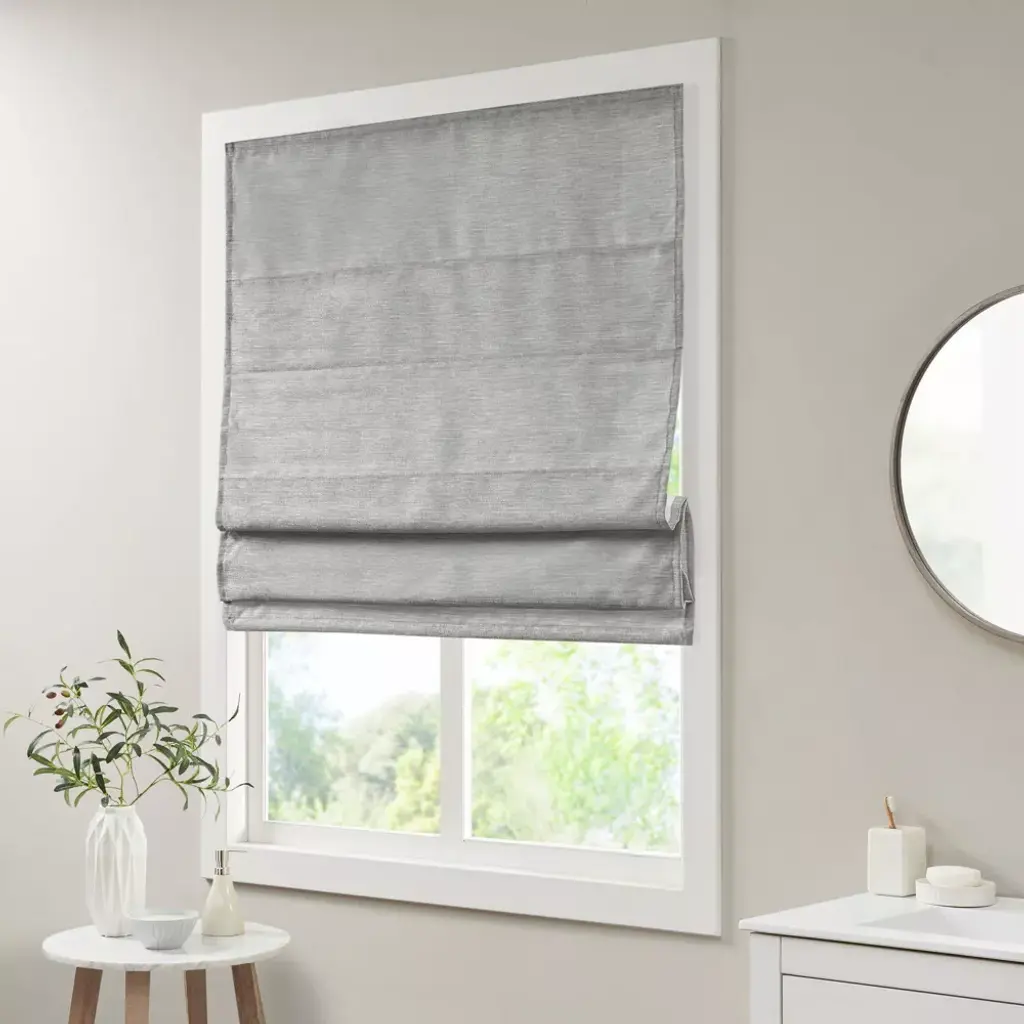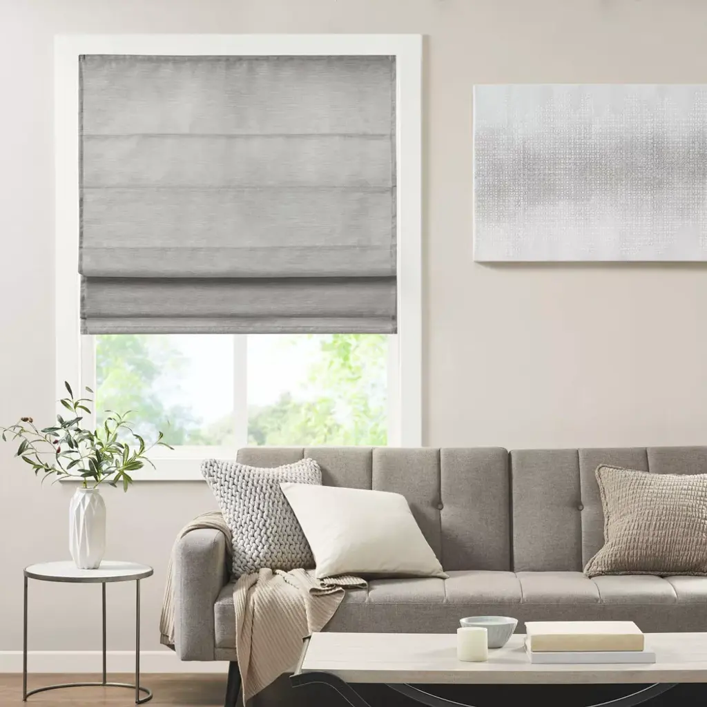 Aberdeen Printed Faux Silk Room Darkening Cordless Roman Blinds and Shade Gray