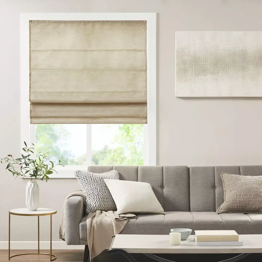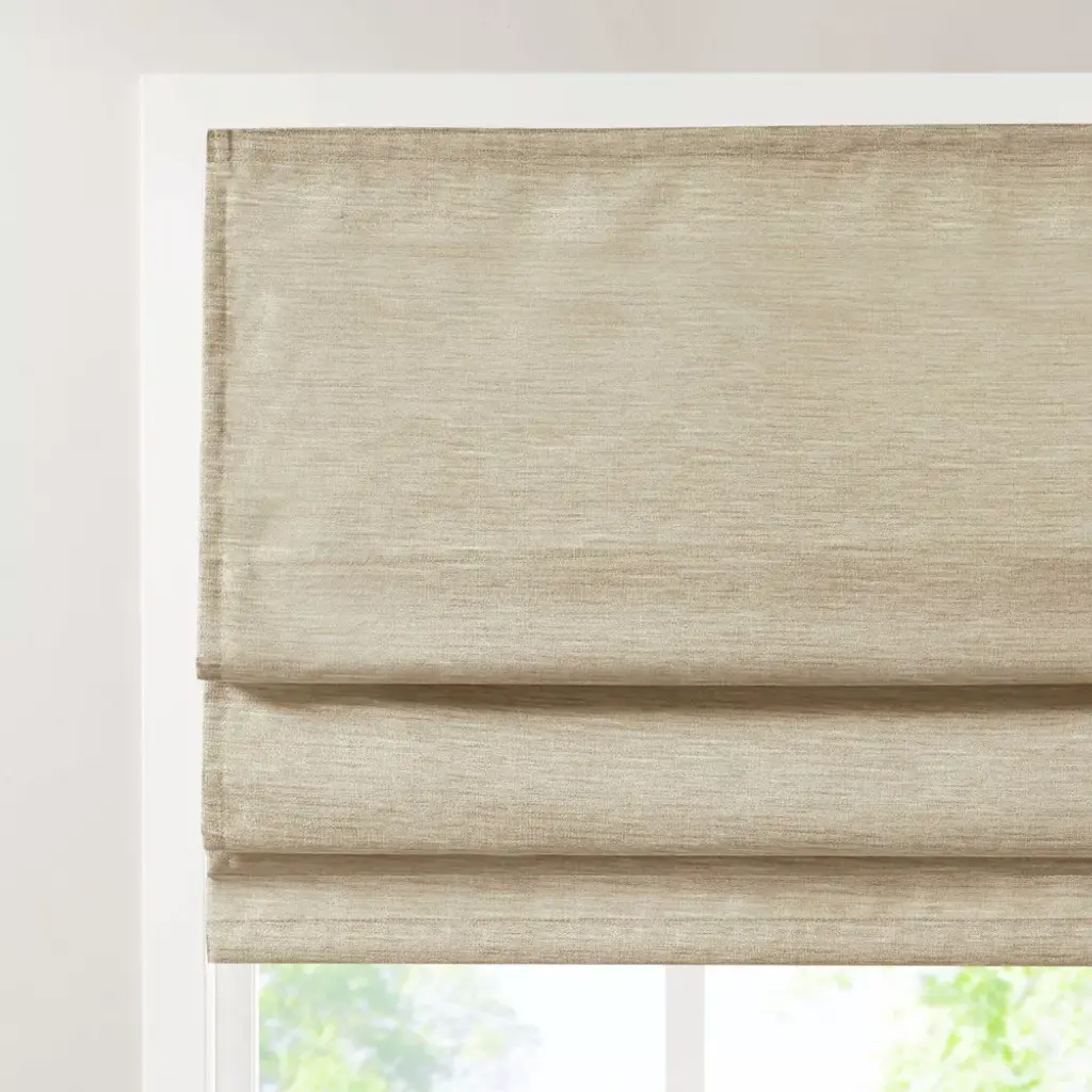 Aberdeen Printed Faux Silk Room Darkening Cordless Roman Blinds and Shade Taupe