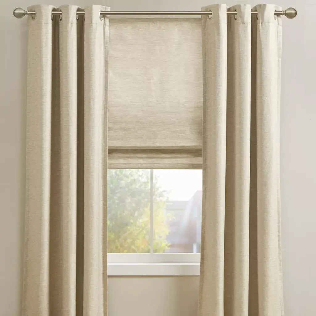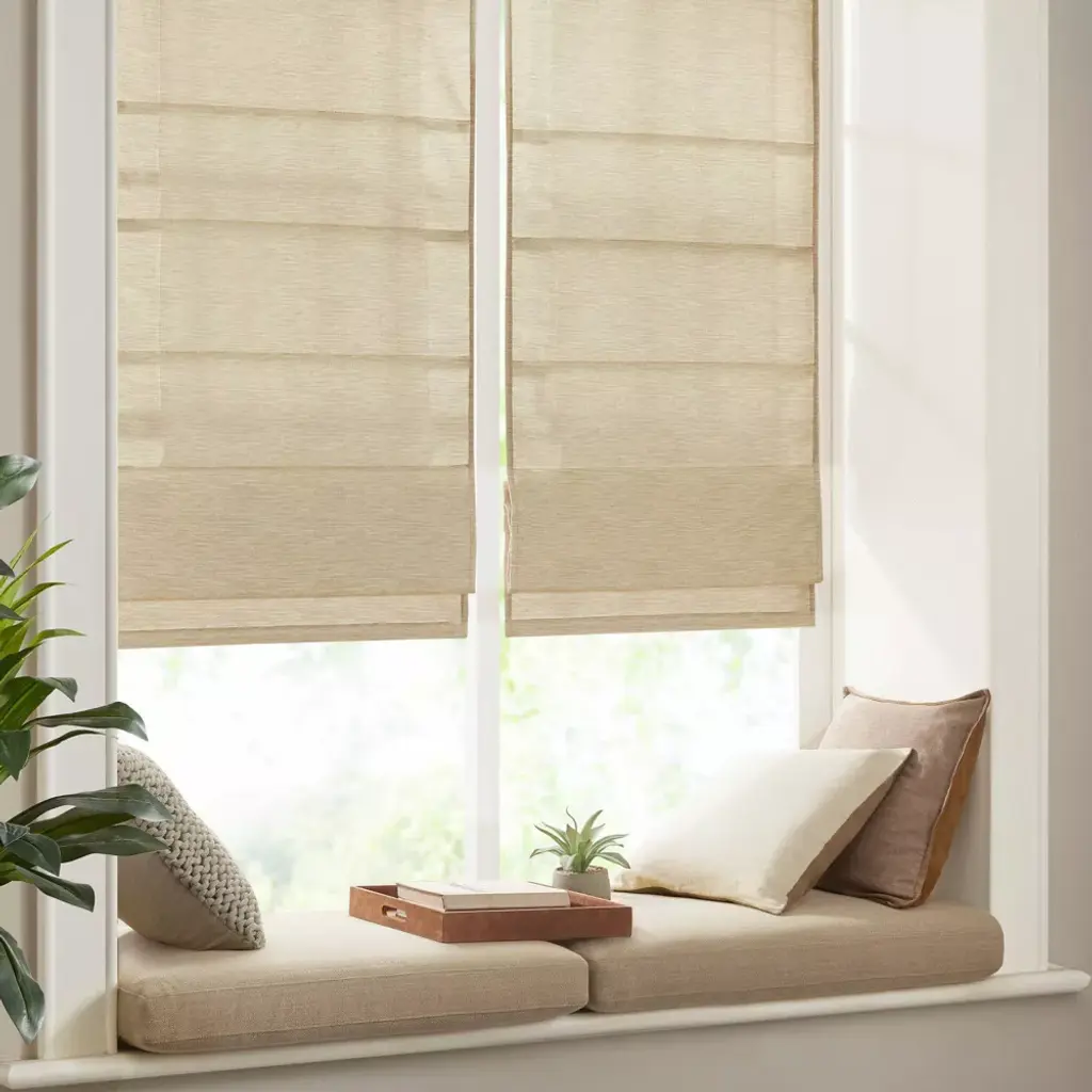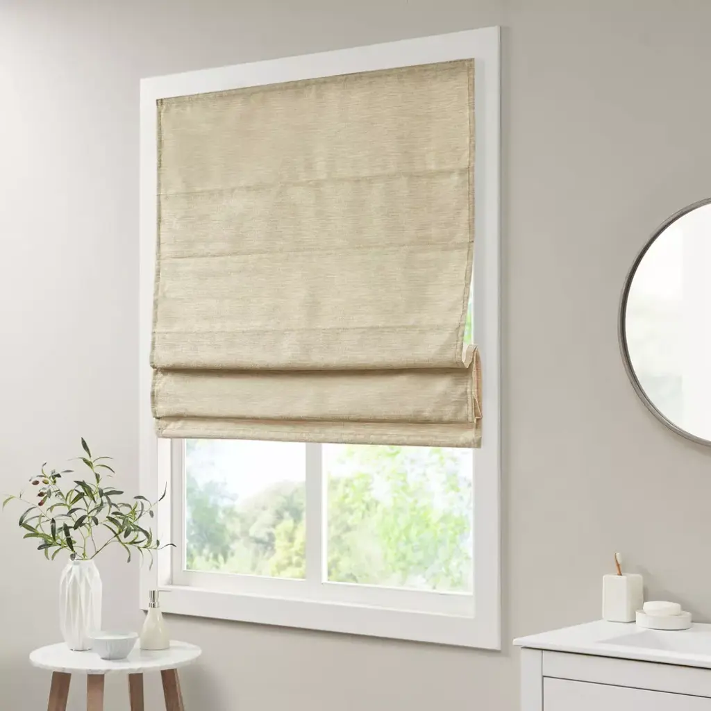 Our Aberdeen Printed Faux Silk Room Darkening Cordless Roman Shade offers a modern and convenient update to your home decor. This roman shade flaunts a tonal ivory faux silk textured fabric to create a stylish and beautiful, look and feel. Also achieving the OEKO-TEX certification, these curtains do not contain any harmful substances or chemicals ensuring quality comfort and wellness. A thermal foambacking on the reverse provides energy efficiency and a room darkening effect, for enhanced privacy. The cordless retraction mechanism makes the room darkening shade easy to open and close the throughout the day, while the detachable fabric face allows for easier assembly and cleaning by lightly shaking or dusting. Please note: The top face fabric is detachable from the hook and loop fastener, but is NOT fully removable. Ready to install right out of the packaging, this roman shade can be hung inside or above the window pane allowing you to find the perfect fit for your home decor. Shade measures 64-inches long and comes in 5 width options to suit multiple standard window sizes. Each roman shade is sold as a single and comes with a printed instructional guide as well as an instructional video available on site. Assembly is required.