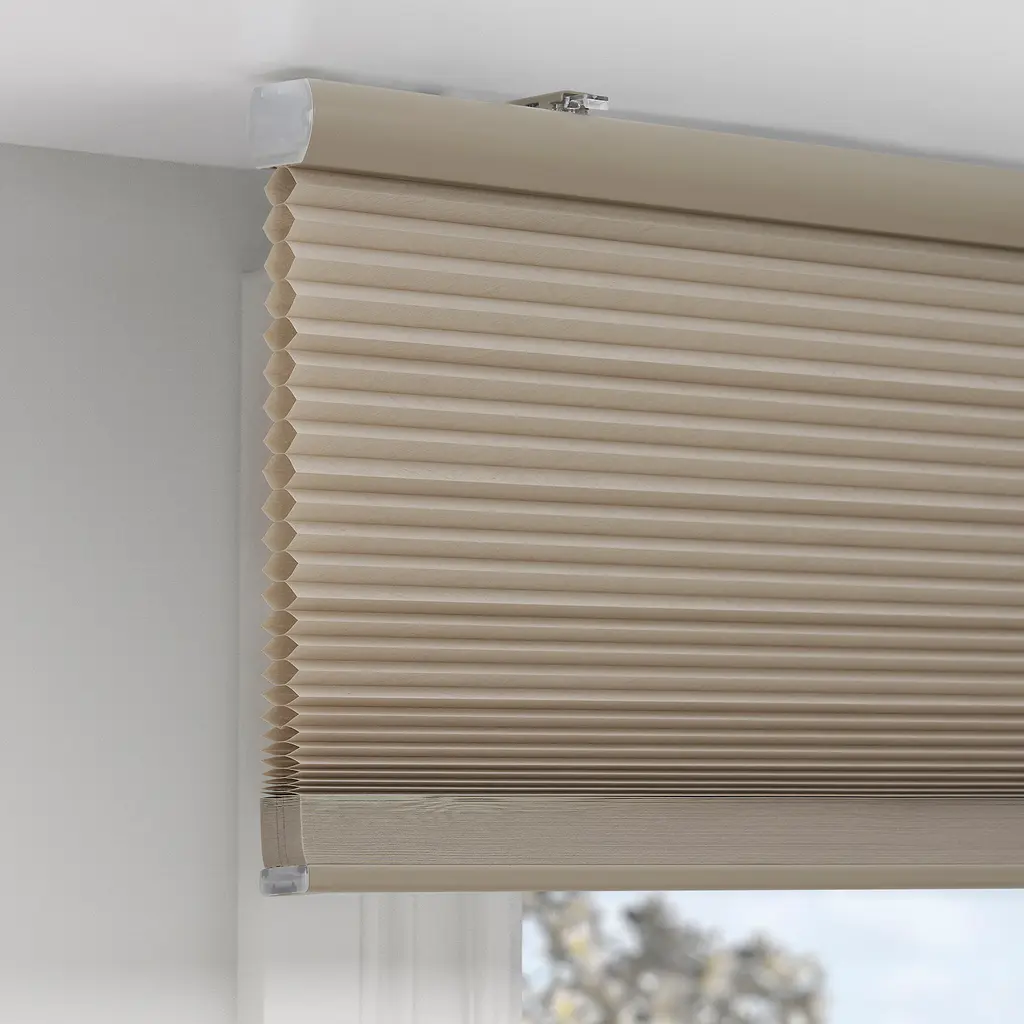 HOPPVALS Cellular blind - beige 30x64 ". The blind lowers the general light level and provides privacy by preventing people outside from seeing directly into the room. The cord is hidden inside the blind, making it safer if you have children at home. Can be mounted on the wall or ceiling.