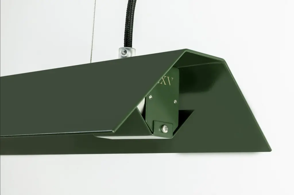 Extra Large Misalliance Ral bottle green suspended light by LexavalaDimensions: D 16 x W 160 x H 8 cmMaterials: powder coated aluminium.There are two lenghts of socket covers, extending over the LED. Two short are to be found in Suspended and Surface, and one long in the Wall model. Customization available. Choosing a different cover than the one in stock involves an additional fee.Hello! My name is Jakuband I’m glad you’re here.Light allows us to create everything.It illuminates the paths we walk and the tables we write our tales on.I have always wanted to create somethingthat standouts from the first time it shines and maintains timeless standards.Every piece released by this companyis a carefully touched product ment to tell something.One isn’t just a lamp. It’s a jewelery with a collection of emotions.I strongly believe that here is where your strivefor a key element of decor could end.Combining efficiency of industrial workspace and magnificanceof handcrafted materials there was only one outcome – Lexavala.Minimalism with boundless range.My company delivers practical art. I make sure every lampaccepted in your living space is going to become a worthy part of your story.