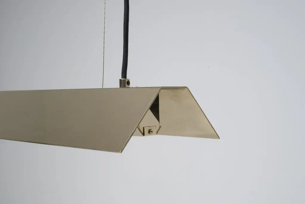 Large Misalliance solid brass suspended light by LexavalaDimensions: D 16 x W 130 x H 8 cmMaterials: Brass.There are two lenghts of socket covers, extending over the LED. Two short are to be found in Suspended and Surface, and one long in the Wall model. Customization available. Choosing a different cover than the one in stock involves an additional fee.Hello! My name is Jakuband I’m glad you’re here.Light allows us to create everything.It illuminates the paths we walk and the tables we write our tales on.I have always wanted to create somethingthat standouts from the first time it shines and maintains timeless standards.Every piece released by this companyis a carefully touched product ment to tell something.One isn’t just a lamp. It’s a jewelery with a collection of emotions.I strongly believe that here is where your strivefor a key element of decor could end.Combining efficiency of industrial workspace and magnificanceof handcrafted materials there was only one outcome – Lexavala.Minimalism with boundless range.My company delivers practical art. I make sure every lampaccepted in your living space is going to become a worthy part of your story.
