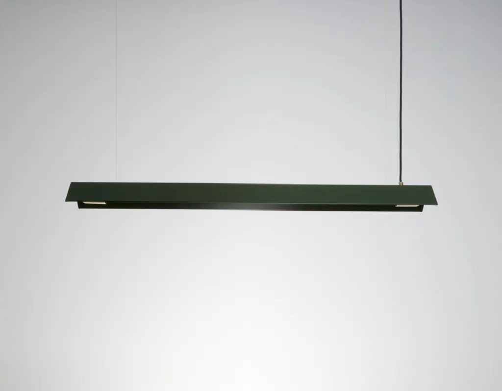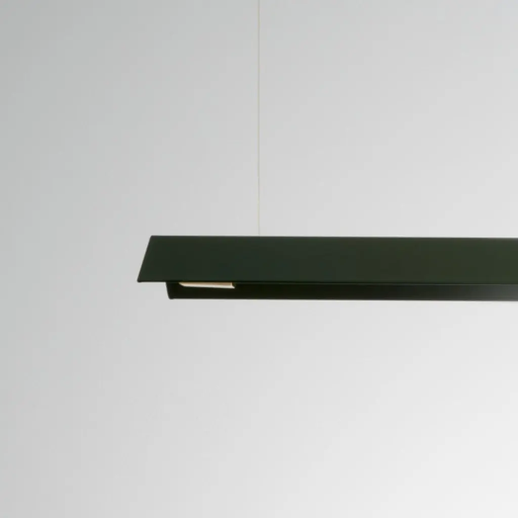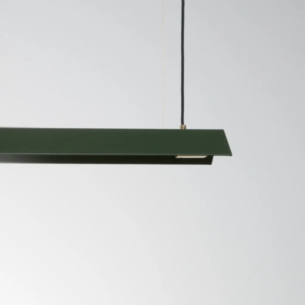 Medium Misalliance Ex bottle green suspended light by LexavalaDimensions: D 16 x W 100 x H 8 cmMaterials: powder coated shade with details made of brass or stainless steel.There are two lenghts of socket covers, extending over the LED. Two short are to be found in Suspended and Surface, and one long in the Wall model. Customization available. Choosing a different cover than the one in stock involves an additional fee.Hello! My name is Jakuband I’m glad you’re here.Light allows us to create everything.It illuminates the paths we walk and the tables we write our tales on.I have always wanted to create somethingthat standouts from the first time it shines and maintains timeless standards.Every piece released by this companyis a carefully touched product ment to tell something.One isn’t just a lamp. It’s a jewelery with a collection of emotions.I strongly believe that here is where your strivefor a key element of decor could end.Combining efficiency of industrial workspace and magnificanceof handcrafted materials there was only one outcome – Lexavala.Minimalism with boundless range.My company delivers practical art. I make sure every lampaccepted in your living space is going to become a worthy part of your story.