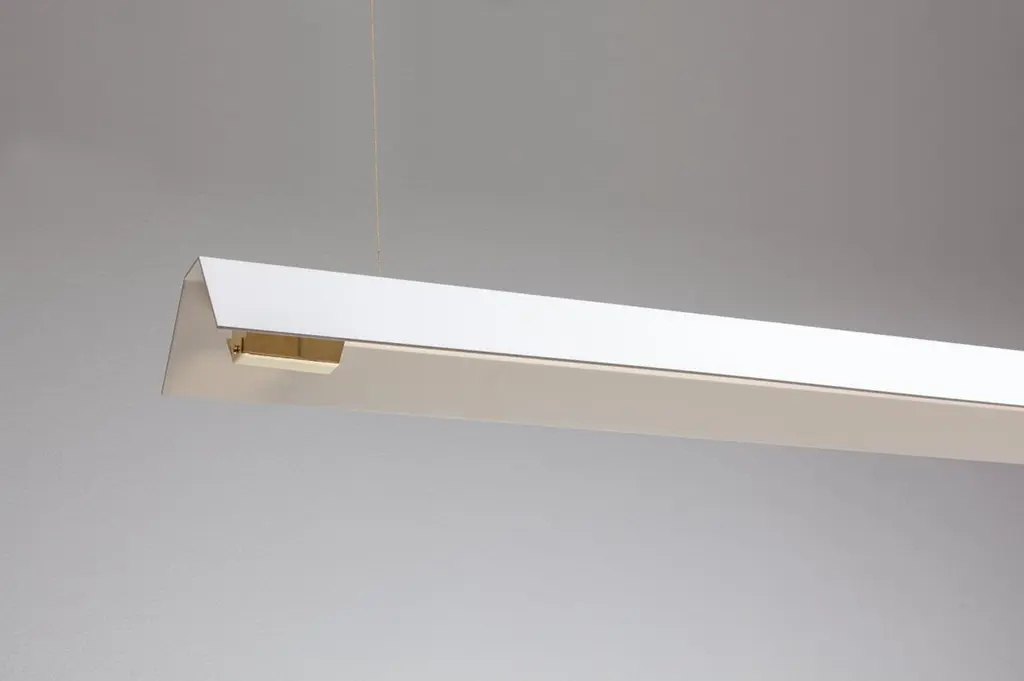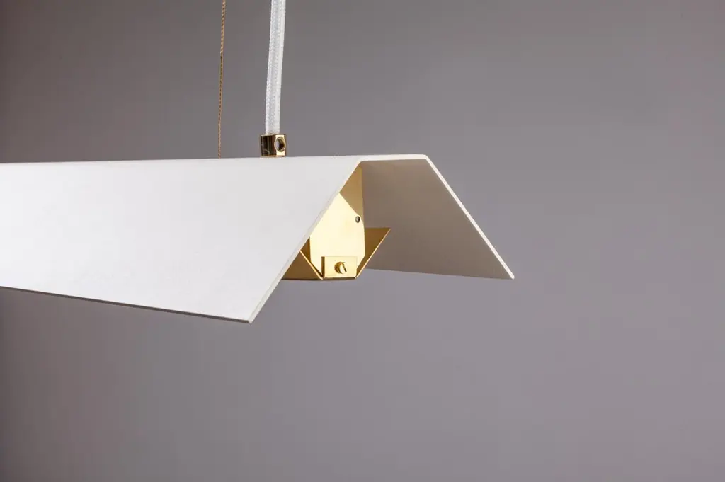 Medium Misalliance ex pure white suspended light by Lexavala.Dimensions: D 16 x W 100 x H 8 cm.Materials: Powder coated shade with details made of brass or stainless steel.There are two lenghts of socket covers, extending over the LED. Two short are to be found in Suspended and Surface, and one long in the Wall model. Customization available. Choosing a different cover than the one in stock involves an additional fee.Hello! My name is Jakuband I’m glad you’re here.Light allows us to create everything.It illuminates the paths we walk and the tables we write our tales on.I have always wanted to create somethingthat standouts from the first time it shines and maintains timeless standards.Every piece released by this companyis a carefully touched product ment to tell something.One isn’t just a lamp. It’s a jewelery with a collection of emotions.I strongly believe that here is where your strivefor a key element of decor could end.Combining efficiency of industrial workspace and magnificanceof handcrafted materials there was only one outcome – Lexavala.Minimalism with boundless range.My company delivers practical art. I make sure every lampaccepted in your living space is going to become a worthy part of your story.