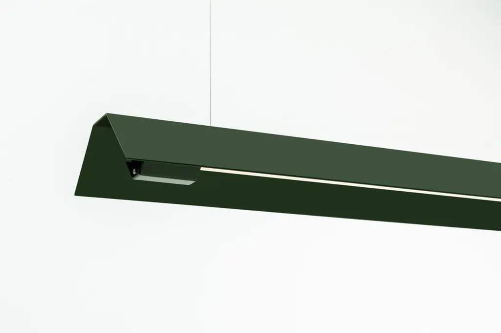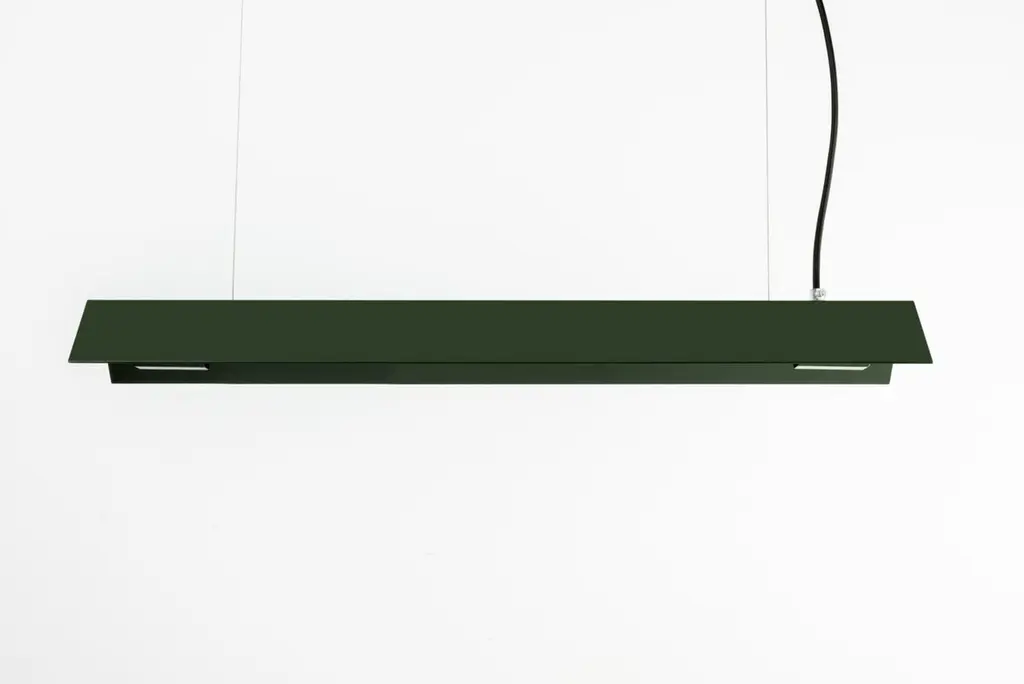 Medium Misalliance Ral bottle green suspended light by LexavalaDimensions: D 16 x W 100 x H 8 cmMaterials: powder coated aluminium.There are two lenghts of socket covers, extending over the LED. Two short are to be found in Suspended and Surface, and one long in the Wall model. Customization available. Choosing a different cover than the one in stock involves an additional fee.Hello! My name is Jakuband I’m glad you’re here.Light allows us to create everything.It illuminates the paths we walk and the tables we write our tales on.I have always wanted to create somethingthat standouts from the first time it shines and maintains timeless standards.Every piece released by this companyis a carefully touched product ment to tell something.One isn’t just a lamp. It’s a jewelery with a collection of emotions.I strongly believe that here is where your strivefor a key element of decor could end.Combining efficiency of industrial workspace and magnificanceof handcrafted materials there was only one outcome – Lexavala.Minimalism with boundless range.My company delivers practical art. I make sure every lampaccepted in your living space is going to become a worthy part of your story.