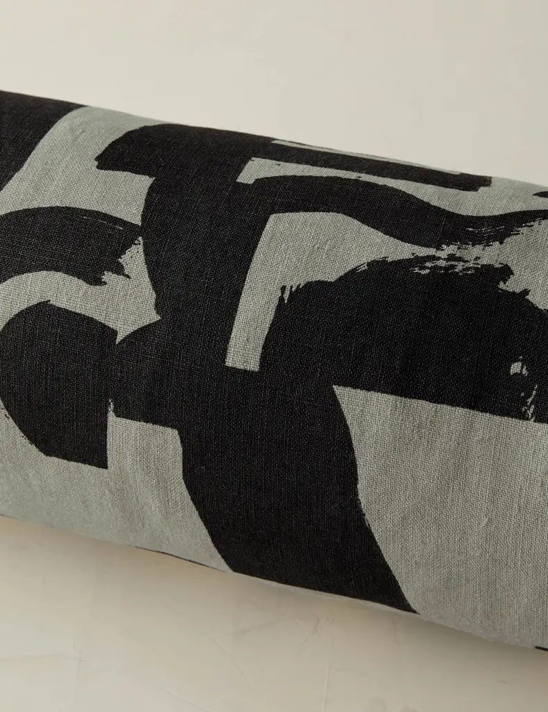 Create a laid-back space with the soft geometry of this linen bolster pillow. Organic shapes in an eclectic arrangement create a design that perfectly blends effortless style with artful appeal. This accent pillow is from our exclusive Sarah Sherman Samuel collaboration and features all the trademarks of her warm, edited style.