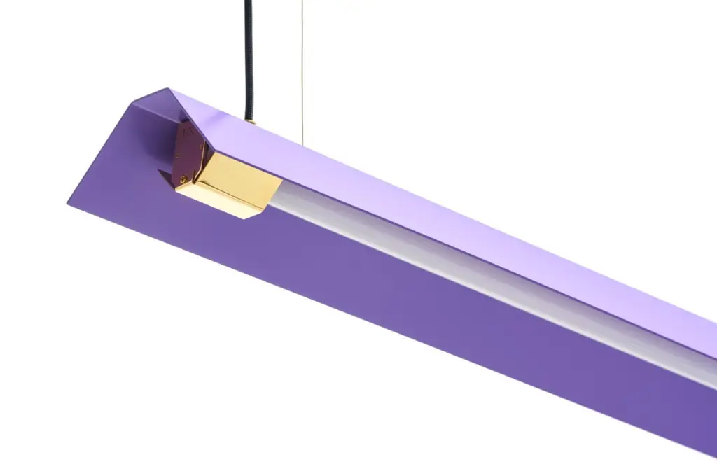 Small Misalliance Ex lavender suspended light by LexavalaDimensions: D 16 x W 70 x H 8 cmMaterials: powder coated shade with details made of brass or stainless steel.There are two lenghts of socket covers, extending over the LED. Two short are to be found in Suspended and Surface, and one long in the Wall model. Customization available. Choosing a different cover than the one in stock involves an additional fee.Hello! My name is Jakuband I’m glad you’re here.Light allows us to create everything.It illuminates the paths we walk and the tables we write our tales on.I have always wanted to create somethingthat standouts from the first time it shines and maintains timeless standards.Every piece released by this companyis a carefully touched product ment to tell something.One isn’t just a lamp. It’s a jewelery with a collection of emotions.I strongly believe that here is where your strivefor a key element of decor could end.Combining efficiency of industrial workspace and magnificanceof handcrafted materials there was only one outcome – Lexavala.Minimalism with boundless range.My company delivers practical art. I make sure every lampaccepted in your living space is going to become a worthy part of your story.