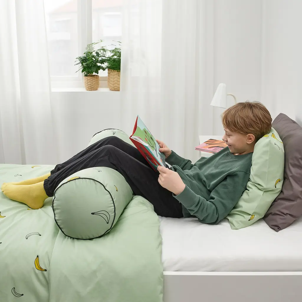 VÄNKRETS Cushion - banana pattern pale green 31 ". The cylinder-shaped cushion provides a soft and nice support for small bodies, heads or feet when it's time to watch TV, read or rest for a while. The polyester filling keeps its shape and provides soft support for your child’s body.