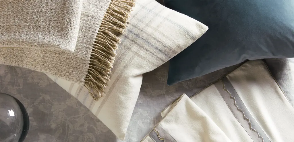 Crisp bands of decorative trim tape define the style of our White Banded Bolster Pillow, but what truly makes this pillow a statement is the demure silver metallic accent that meanders through them. Complements our Salena Embroidered Euro Sham and Salena Embroidered Bolster Pillow.