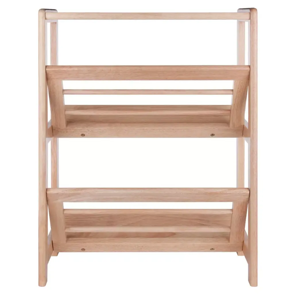 Give your den or living room a stylish and functional update with this Juliet Bookshelf from Winsome. Sporting a sleek frame with a natural finish, this bookshelf features angled, slatted shelves and an open-back design adding breezy charm to your space. This freestanding bookcase is the perfect place to showcase all your favorite books and reading material, while the flat top allows a fine spot to display decor or a bowl of vibrant vase filler for a splash of color.