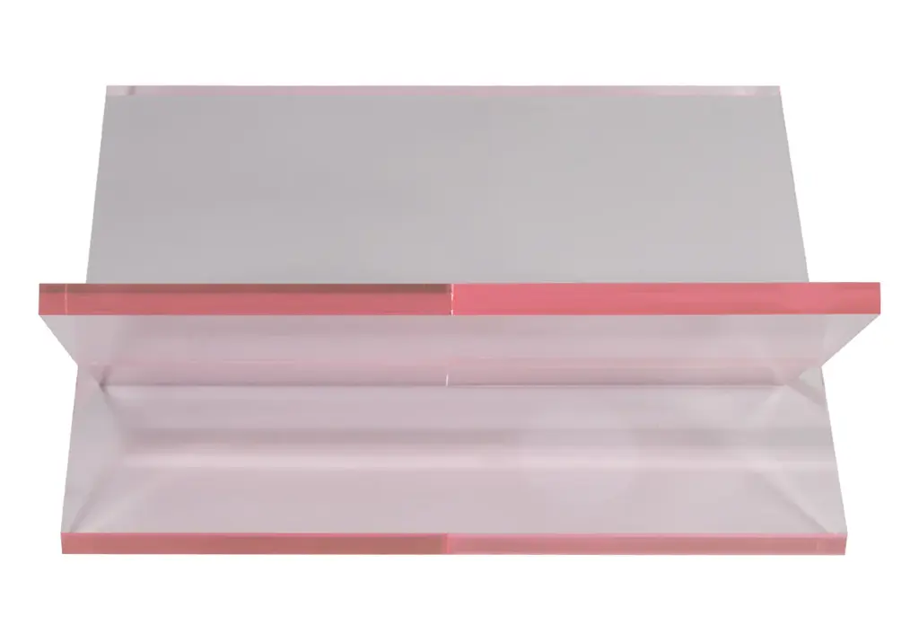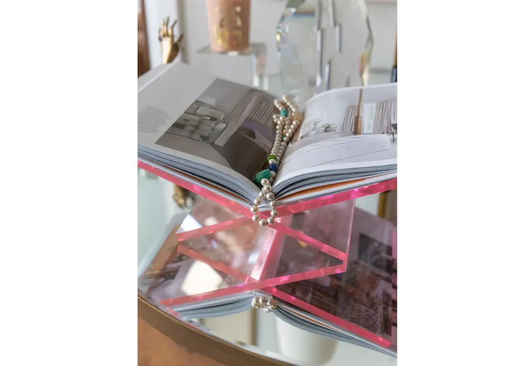 Reminiscent of an 80's pop fashion moment, this book display brings a colorful flair into the room. Its luxurious Lucite form is elevated by a blush tone that when viewed straight on, the entire edge appears neon. It effortlessly displays coffee table books, giving dimension to anywhere its styled.