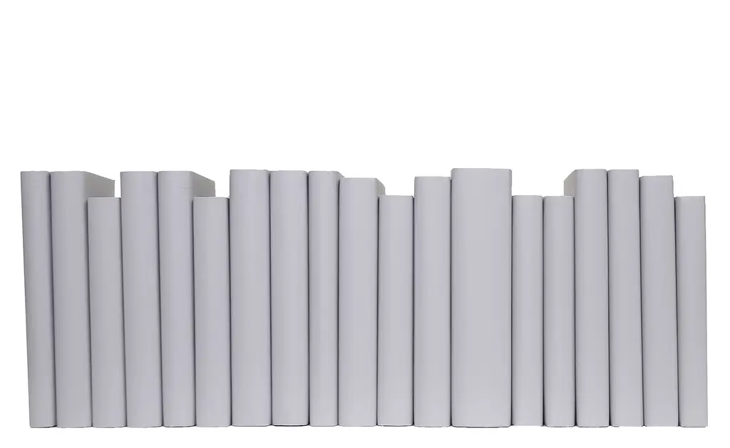 This set of 12 decorative books are hand bound in white tone on tone shagreen.