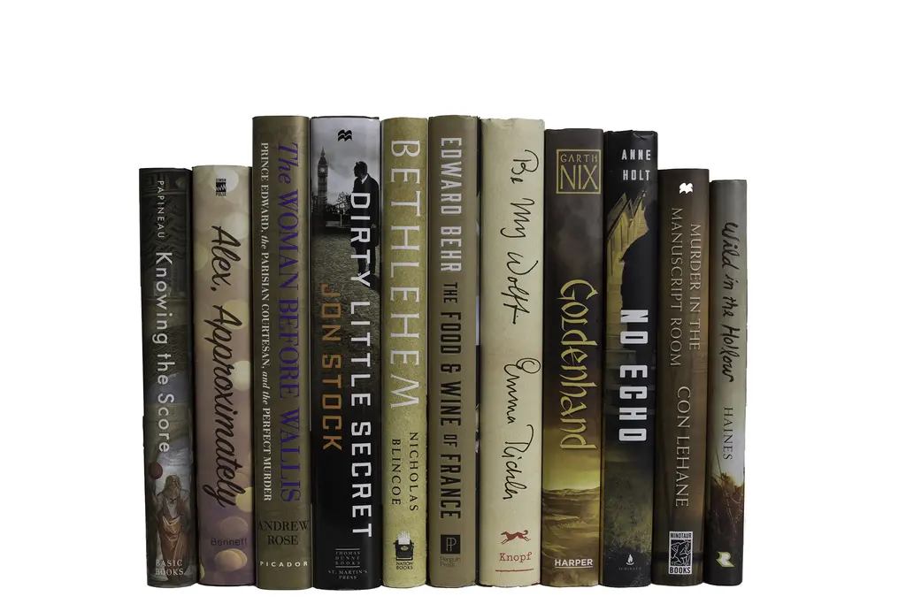 Add a splash of color to your design with a Modern Boardwalk Dust Jacket ColorPak from Booth & Williams. These are authentic Modern hardback books in their original dust jackets in warm shades of muted gold and brown. All books are published 1980-present and include a variety of fiction and non-fiction titles. Contains 10-12 books with an average height of 8.5-9.5������ and hand-wrapped in jute twine.