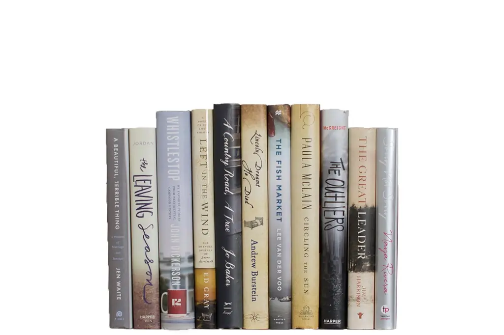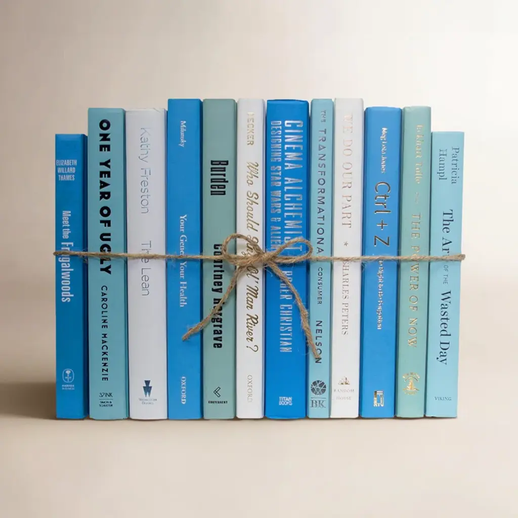 Add a splash of color to your design with a Modern Foggy Days Dust Jacket ColorPak from Booth & Williams. These are authentic Modern hardback books in their original dust jackets in varying shades of neutral cream, tans and greys. All books are published 1980-present and include a variety of fiction and non-fiction titles. Contains 10-12 books with an average height of 8.5-9.5��� and hand-wrapped in jute twine.