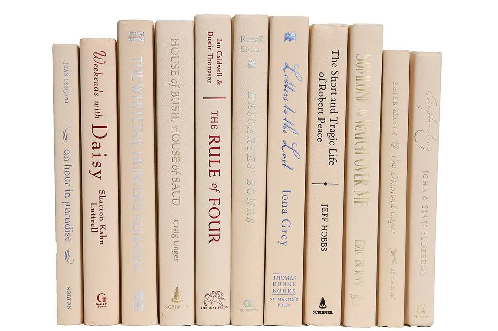 Take your design to a new level with the Modern Warm Sand ColorPak from Booth & Williams. One linear foot of authentic modern hardback books in crisp shades peach and warm tan. All books are published 1980-present and include a variety of literary works, period novels and topical texts with light overall wear. Contains 10-12 books with an average height of 8 -9.5" and hand-wrapped in jute twine. Order as many ColorPaks as you need to complete your project. Titles will differ from those pictured.