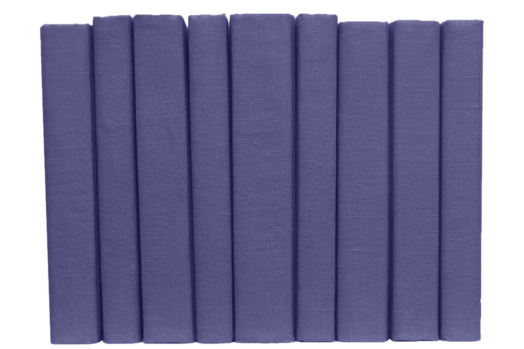 Transform your space with our Dark Very Peri Linen Wrapped ColorPak from Booth and Williams. One linear foot of authentic modern hardback books hand wrapped in a violet infused blue linen fabric that is precisely attached to each individual book's cover. Contains 7-12 books with an average height of 9.5-10���� and hand-wrapped in jute twine. Made to order-allow 3-5 business days before shipment.