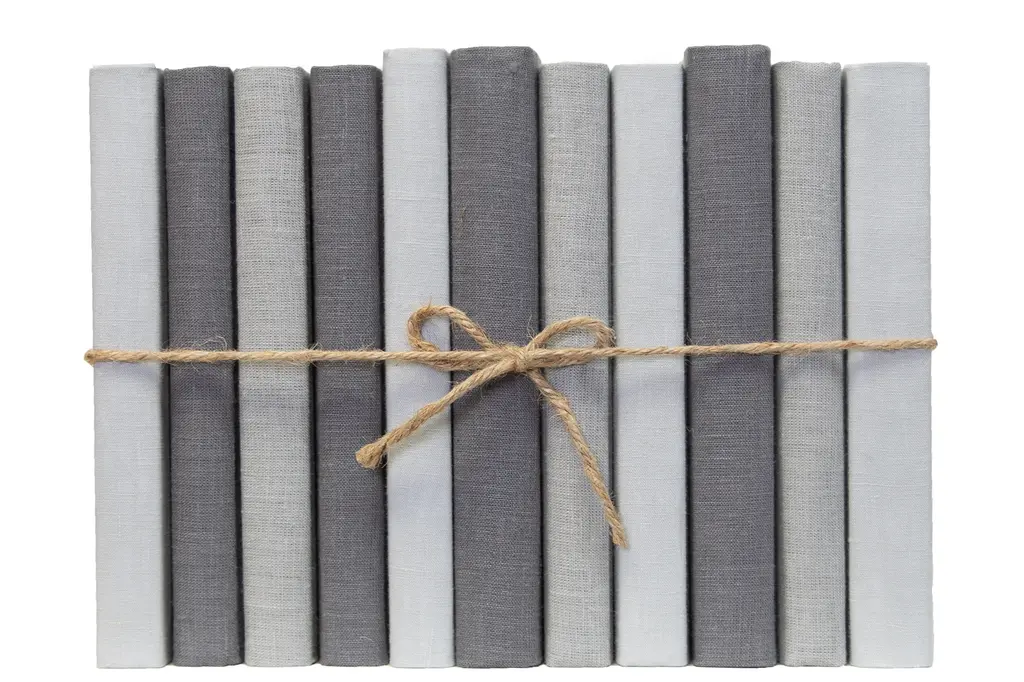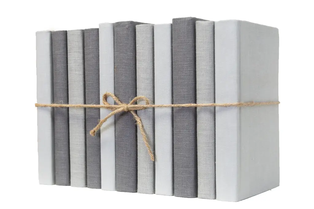 Transform your space with our Granite Linen Wrapped ColorPak from Booth and Williams. One linear foot of authentic modern hardback books hand wrapped in varied shades of light to dark grey Linen Fabric that is precisely attached to each individual book's cover. Contains 7-12 books with an average height of 9.5-10��� and hand-wrapped in jute twine. Order as many ColorPaks as needed to complete your project. Made to order-allow 3-5 business days before shipment.