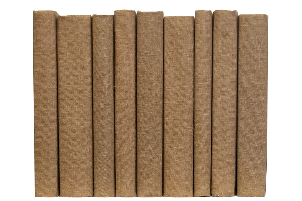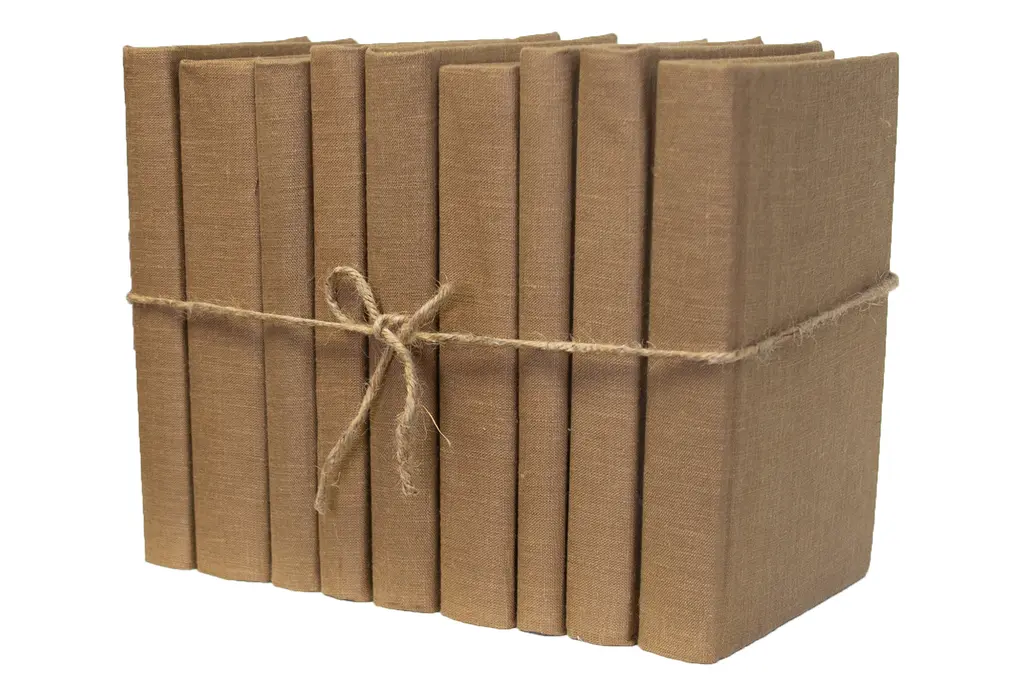 Transform your space with our Havana Linen Wrapped ColorPak from Booth and Williams. One linear foot of authentic modern hardback books hand wrapped in warm medium brown linen fabric that is precisely attached to each individual book's cover. Contains 7-12 books with an average height of 9.5-10” and hand-wrapped in jute twine. Made to order-allow 3-5 business days before shipment.