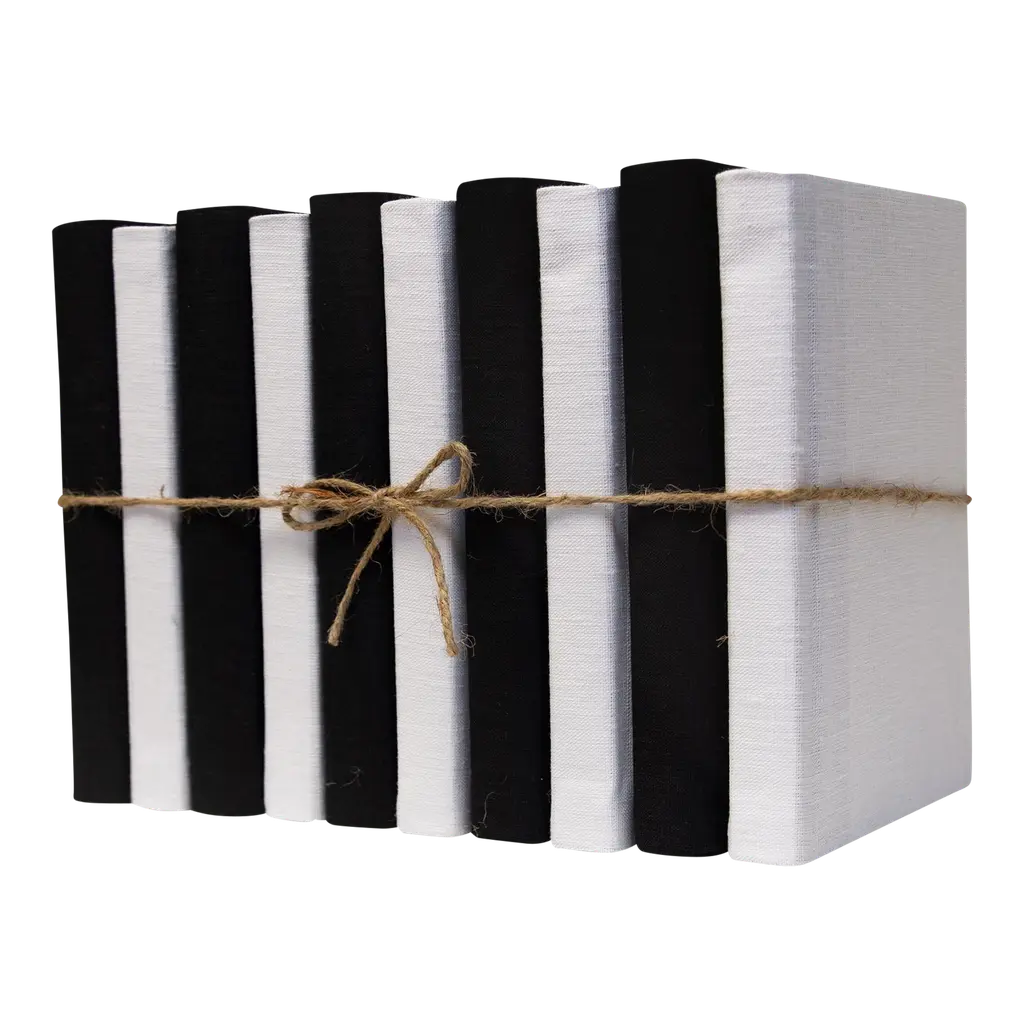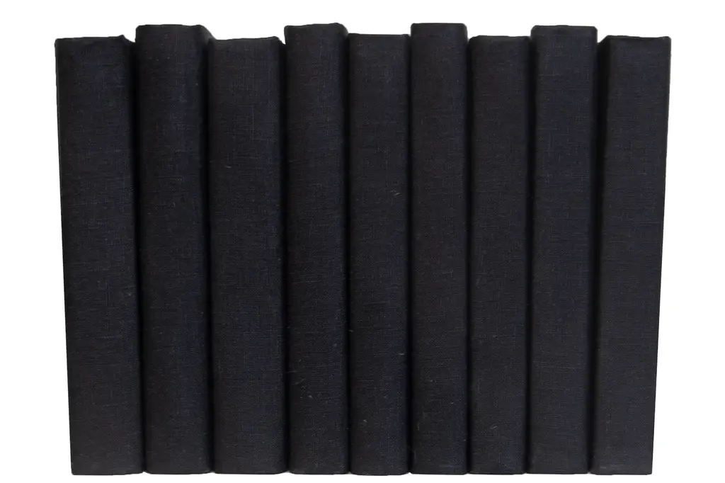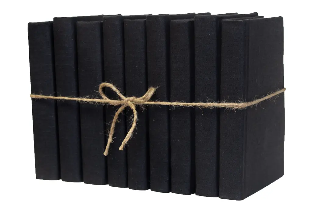 Transform your space with our Onyx Linen Wrapped ColorPak from Booth and Williams. One linear foot of authentic modern hardback books hand wrapped in a deep black linen fabric that is precisely attached to each individual book's cover. Contains 7-12 books with an average height of 9.5-10” and hand-wrapped in jute twine. Made to order-allow 3-5 business days before shipment.
