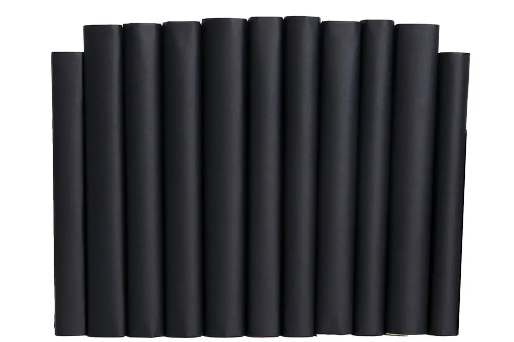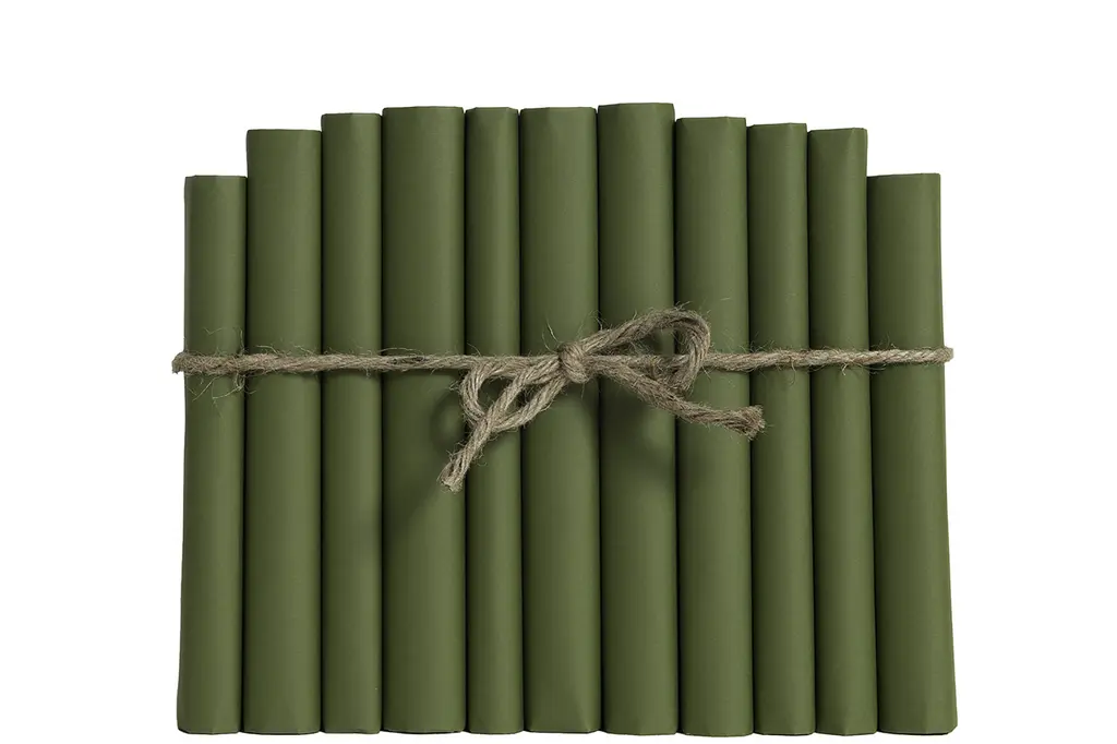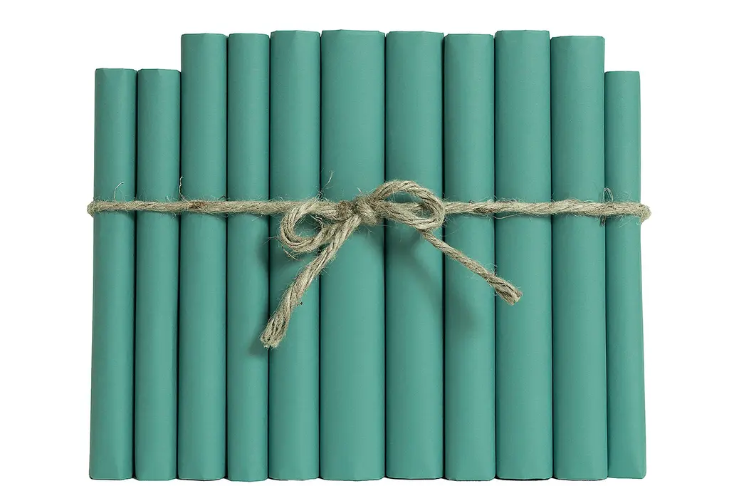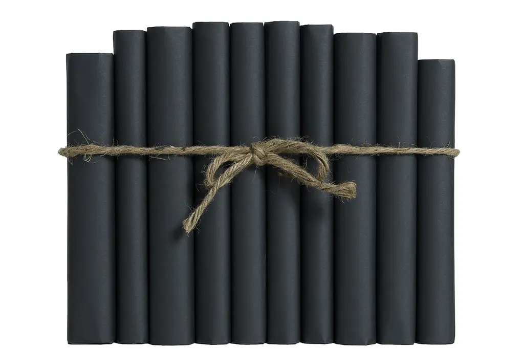 Add a splash of color to your design with a Onyx Paper Wrapped ColorPak from Booth & Williams. One linear foot of authentic modern hardback books wrapped in a shade deep black 80T paper. Contains 10-12 books with an average height of 8.5-9.5” and hand-wrapped in jute twine.