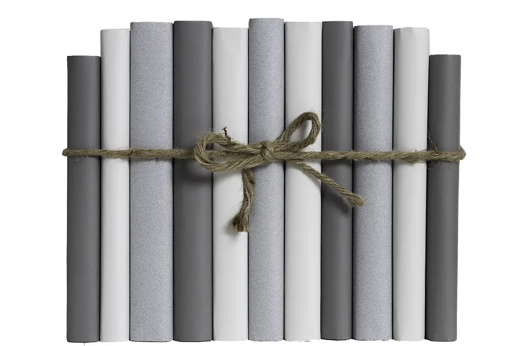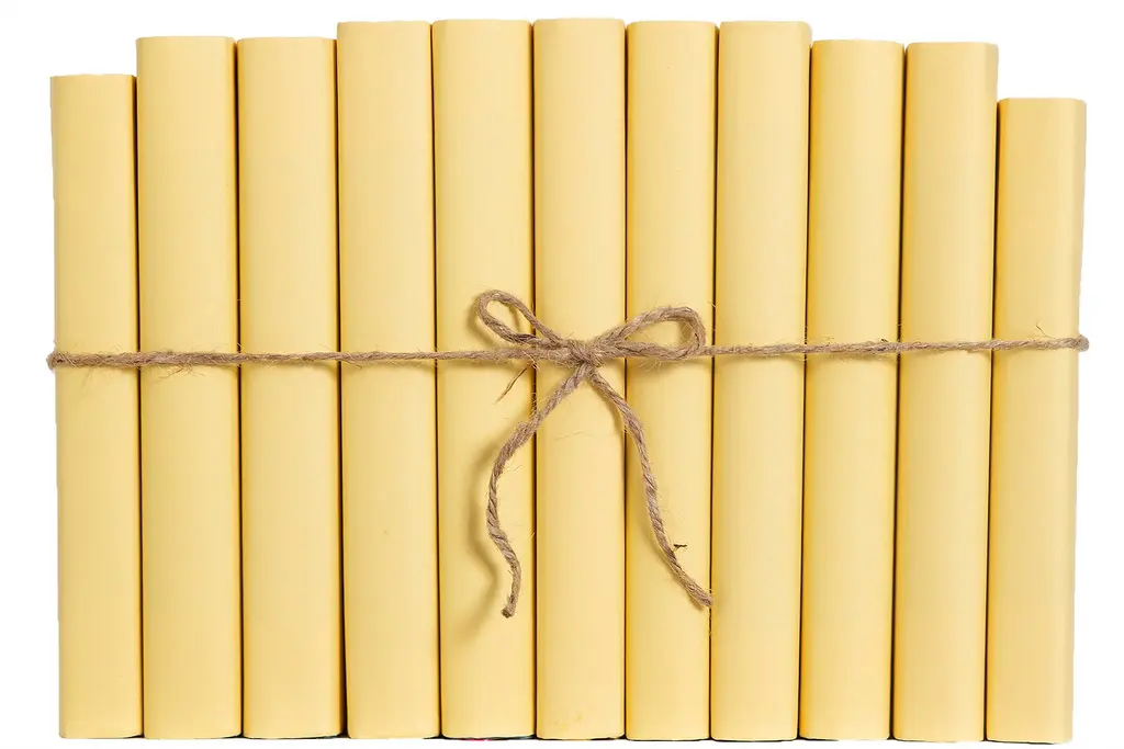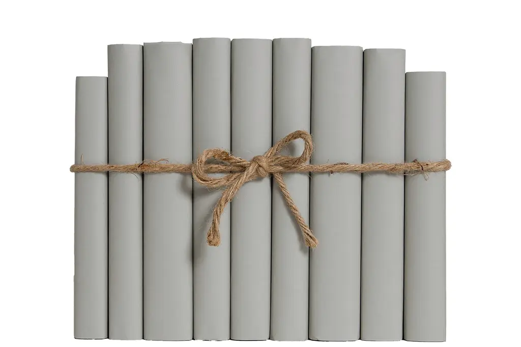 Add a splash of color to your design with a Seashell Paper Wrapped ColorPak from Booth & Williams. One linear foot of authentic modern hardback books wrapped in a shade of warm neutral 80T paper. Contains 10-12 books with an average height of 8.5-9.5�� and hand-wrapped in jute twine.