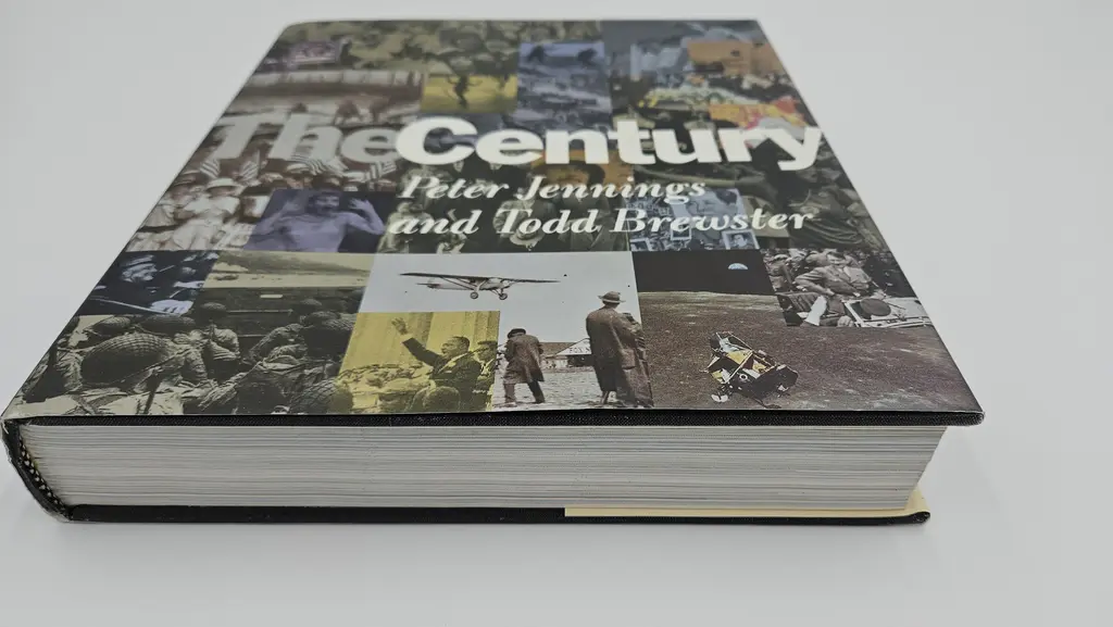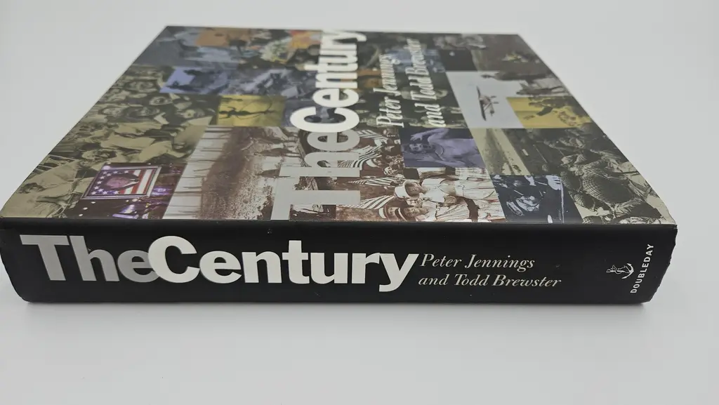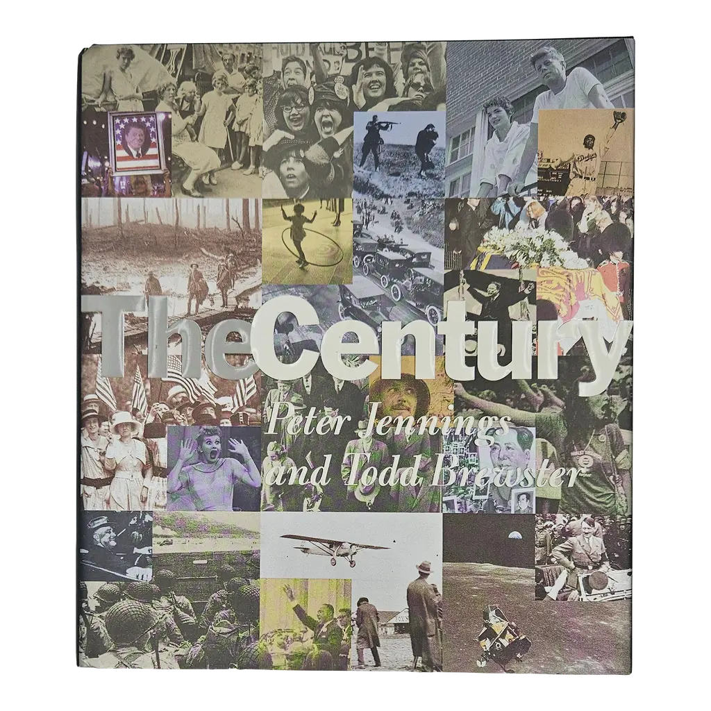 The image shows the cover of the book "The Century" by Peter Jennings and Todd Brewster. It is a 600-page historical account of the 20th century, published in 1998 as a companion to the ABC documentary series of the same name. Key details: Authors: Peter Jennings, an ABC News anchor, and Todd Brewster, a senior editorial producer. Content: Explores major themes of the 20th century, including technology, imagination, violence, and entertainment, through chronological chapters. Features: Includes first-person accounts and archival images. Reception: Topped the New York Times Best Seller list before the documentary series aired. Publication Date: November 10, 1998.
